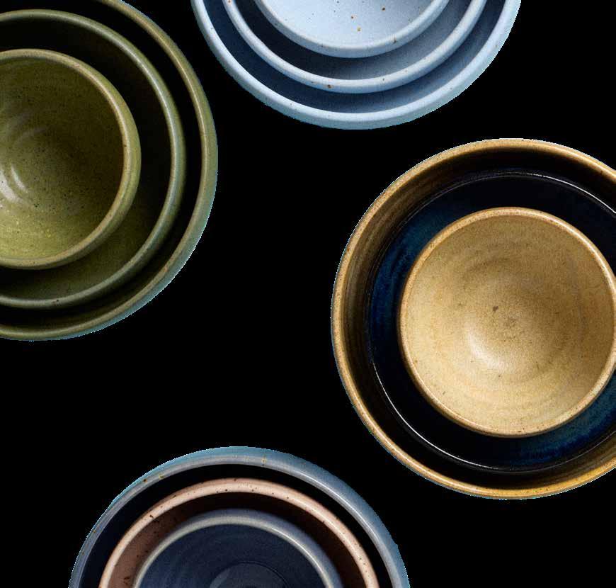 Alle tallerkener fås i flere forskellige farver og har en rå underkant, som er slebet blød.