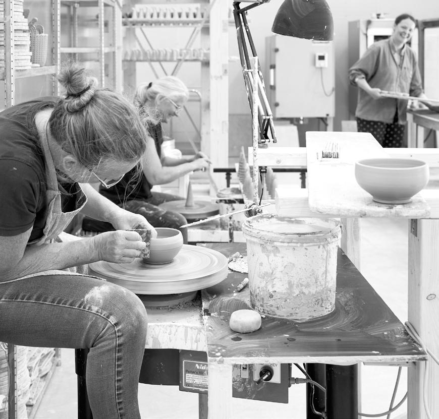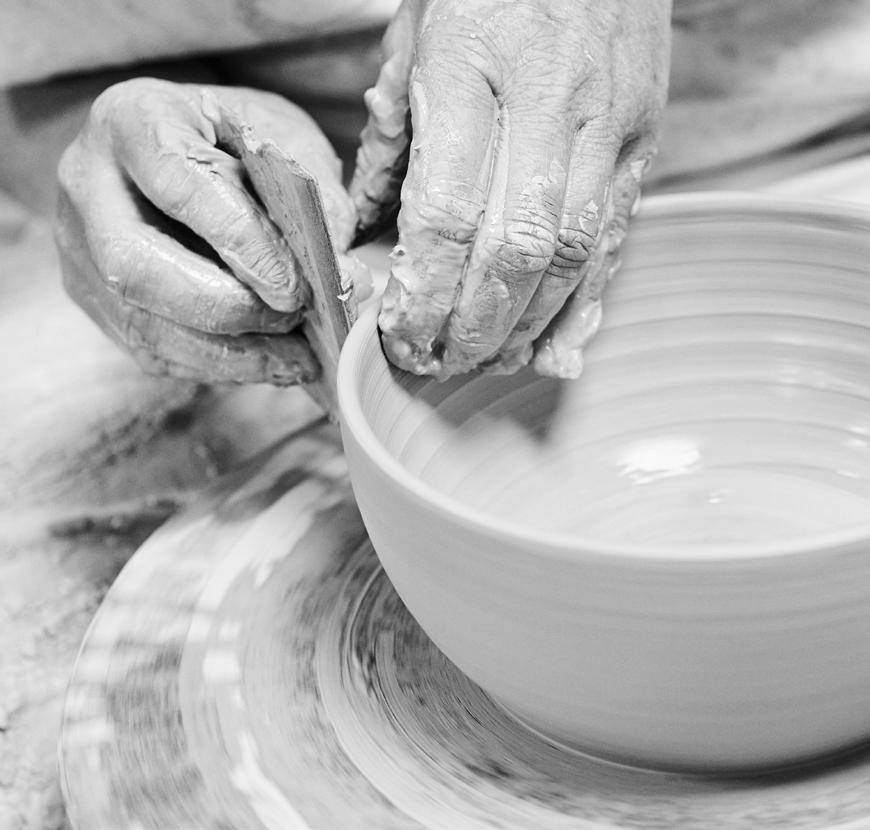 Størstedelen af vores vaseproduktion er hånddrejet af recycle clay.