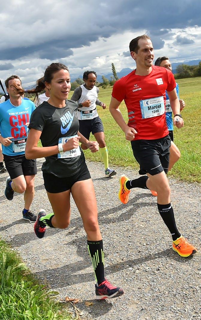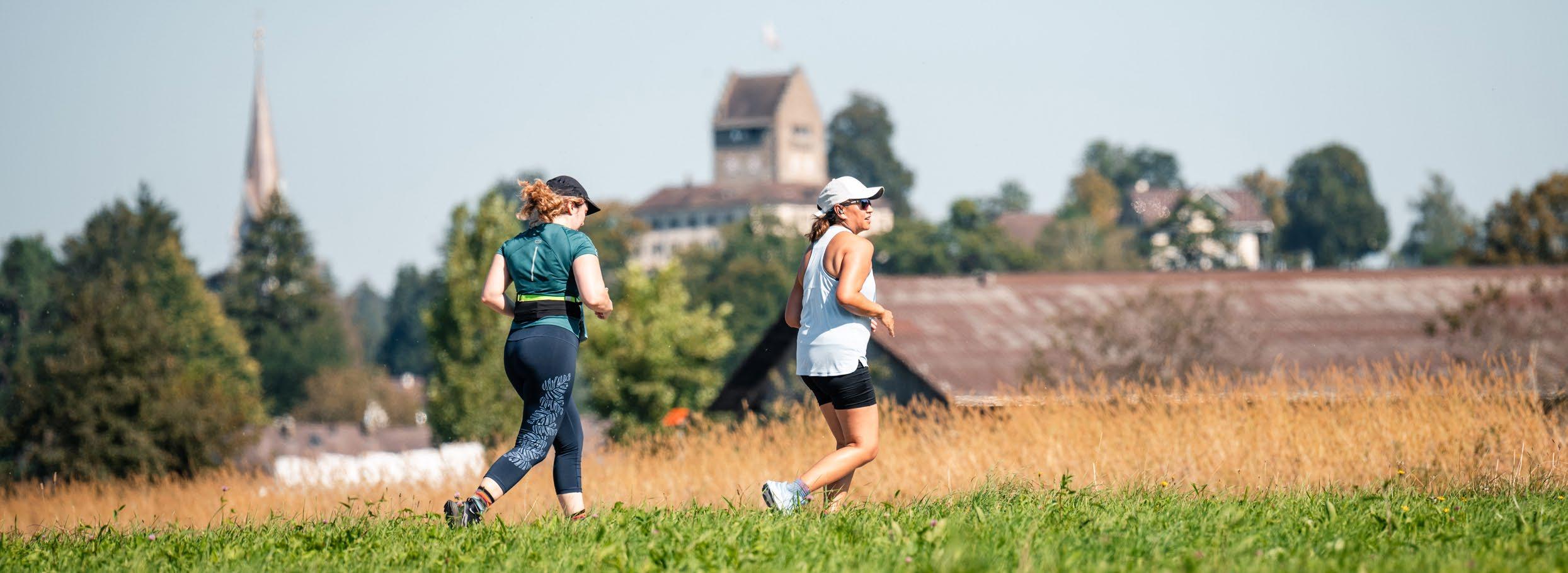 Ab Maur („Wechselzone“ oberhalb Parkplatz) laufen die beiden Personen gemeinsam bis ins Ziel in Uster.