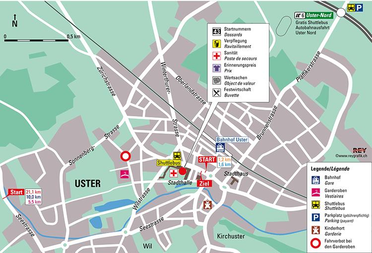 Lass also dein Auto, wenn möglich, zu Hause oder parke an den eigens dafür eingerichteten Parkplätzen bei der Autobahn-Ausfahrt Uster-Nord. Zwischen 8 und 17 Uhr stehen Busse für den Tranport ins Stadtzentrum und zurück zur Verfügung.