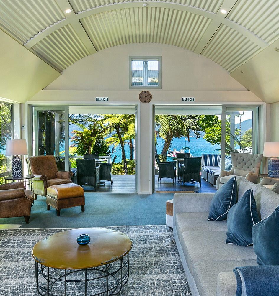 Experience a five star luxury lodge in the Marlborough Sounds. Relax in a spacious apartment with uninterrupted views of the blue waters and native bush clad hills. Dine at our “Foredeck” restaurant, swim in our fresh water all-seasons pool and cedar hot-tub, enjoy bush walks around the bays, to waterfalls or spectacular lookout points, or read the newspapers over coffee at either of our two licensed cafés - “Kumatage” and “Quarterdeck”. We offer an exclusive retreat in Marlborough, the heart of New Zealand’s finest wine growing country, a playground for sailing, cruising, fishing, diving, walking and kayaking in an unspoilt natural environment.
