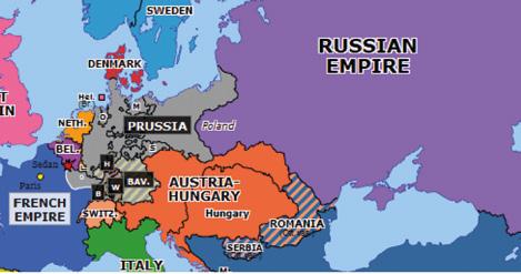 This was, in theory, to make sure that an invading country such as France or Russia could be defeated by the combined military of all of Germany but that this combined military would only be used for defence – not attack. Furthermore, many smaller German were given to the larger states like Bohemia or Bavaria to enhance each states military just enough to counter both Prussian and outside aggression but not enough to be able to develop any real threats of invasion to another state. However, the Congress’ solution to the German problem was not entirely successful as in fact, being the largest state and therefore having the largest military, Prussia ended up being the guardian against outside aggression as they contributed the most to defence. What this did was to create a new Great Power and enhance calls for German unity under the powerful Prussia as the German people wanted to and saw a way in which they would be able to. Therefore, the solution created was ultimately a short-term success as no power did control the whole of Germany. However, it did lead to German states constantly turning to Prussia for defence and thus accelerated the dangerous rise of nationalism in Germany.