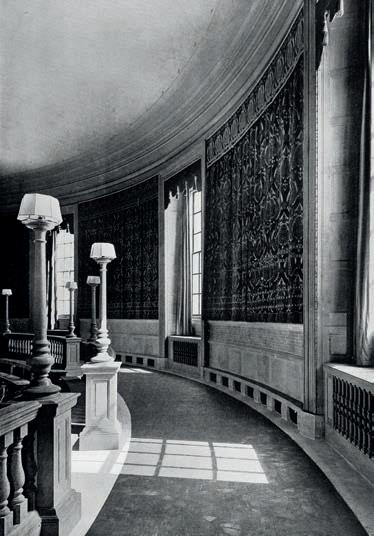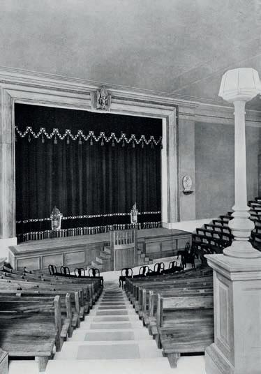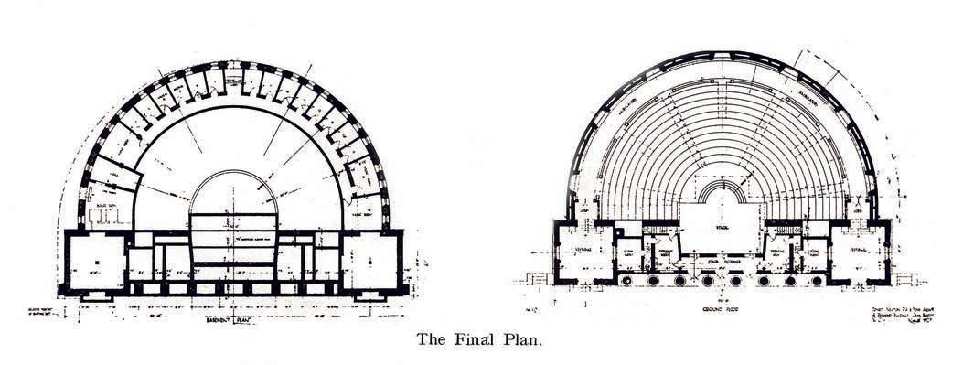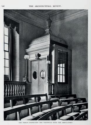 Newton’s original gilded wood pendant lanterns above the auditorium, which provided an almost oriental accent, also helped to relieve the plainness of the interior. In a lavish seventeen-page review in The Architectural Review of June