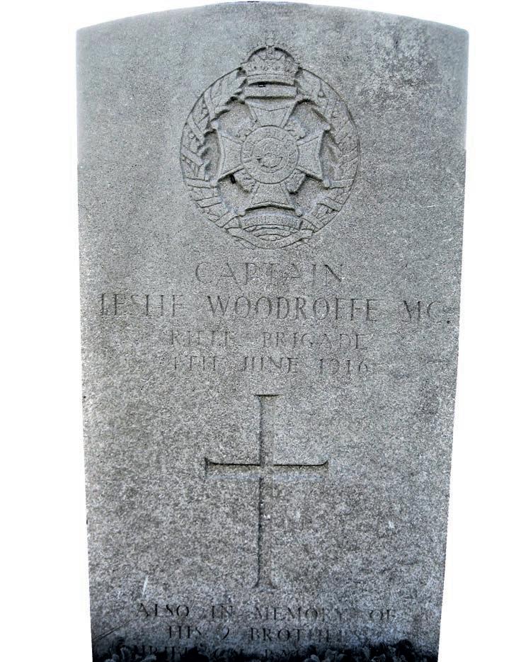 The eldest of the three, Leslie (B1 1898-1904), who had become a schoolmaster at Shrewsbury, was severely wounded in the same action, but returned to the front less than a year later, only to die of shell-fire wounds on 4th June 1916. Of Kenneth (B1 1906-12), the middle one of the three, who was the first to die, killed in action in the attack on Aubers Ridge in May 1915, it was said in tributes in The Marlburian that ‘Few boys combined so many gifts of scholastic ability, athletic prowess and personality. Open, genial and unassuming, yet with the power and will to assert himself in School and House, he was a great force here’. The same could have been said of both Sidney and Leslie. On the news of Leslie’s death The Marlburian reported: ‘The sympathy of the whole Marlburian world will go out to Mr and Mrs Woodroffe in this final loss; they offered all and alas! they have lost all.’