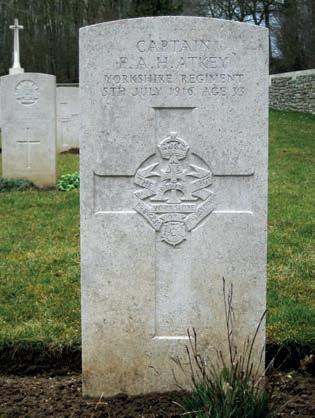 Another scholar on the staff, this time from Pembroke College Cambridge, was Freeman Atkey, who arrived to teach at Marlborough in 1908. Described by his old tutor as ‘the best pupil I ever had at Pembroke’, he was the first beak to recognise the genius of Charles Sorley. Freeman agonised over joining the Army in September 1914 but found contentment in the comradeship of the trenches. Like many volunteer officers, he worried about proving himself in a setting so alien to his nature, but his coolness when in danger was never in doubt. He was killed by a sniper’s bullet a few days after the start of the Battle of the Somme in July 1916 and was much mourned by those he served with: ‘his loss is regretted by every officer and man in the battalion. He was absolutely fearless’. Sorley described him as ‘the sanest, humanest man in Common Room’, yet another rich talent snuffed out in his prime.