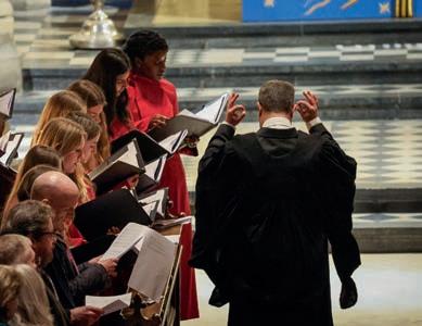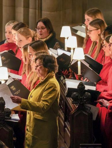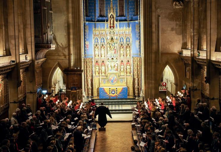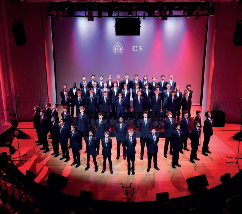 Little more than an hour after the concert audience had departed, the centenary celebration moved to the Chapel, where the Opening had begun 100 years before. For the service of Choral Evensong at 6.30pm, led by the Senior Chaplain, Revd Tim Novis, the Chapel Choir was joined by the Old Marlburian Choir. Directed by music beak Jonathan Cox (CR 2021- ), and accompanied by College Organist Michael Butterfield (CR 2020- ), the combined resources of some 70 singers fittingly encompassed the same number of years of choral music in the Chapel, with Old Marlburian representation back to the mid-1950s.