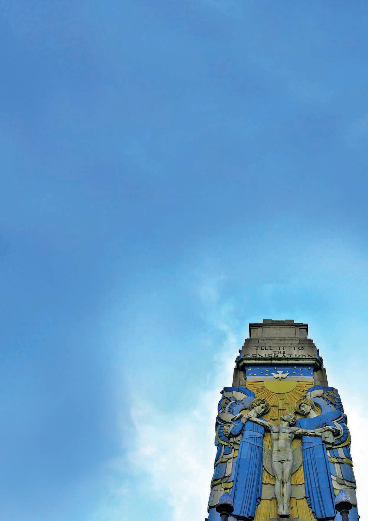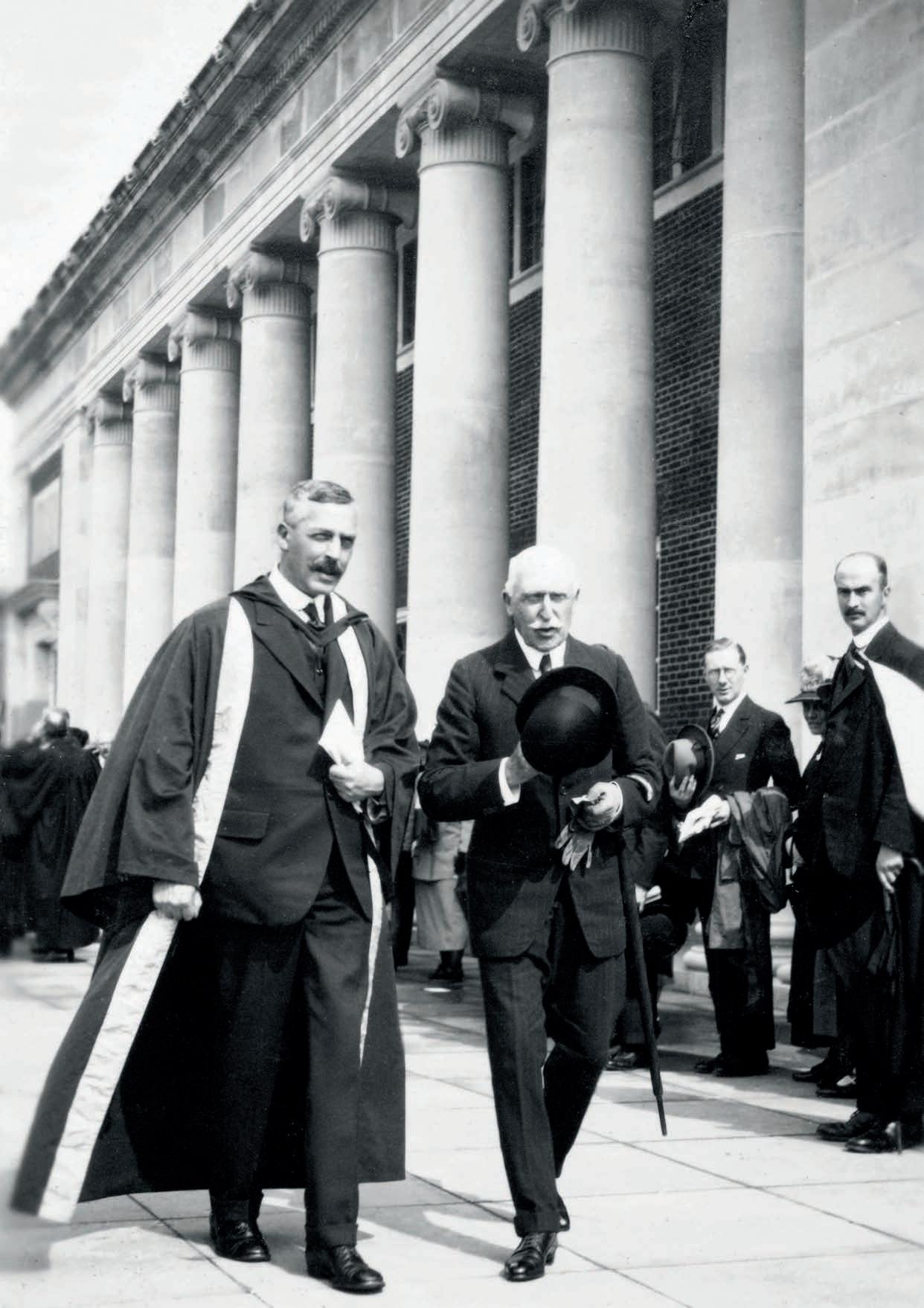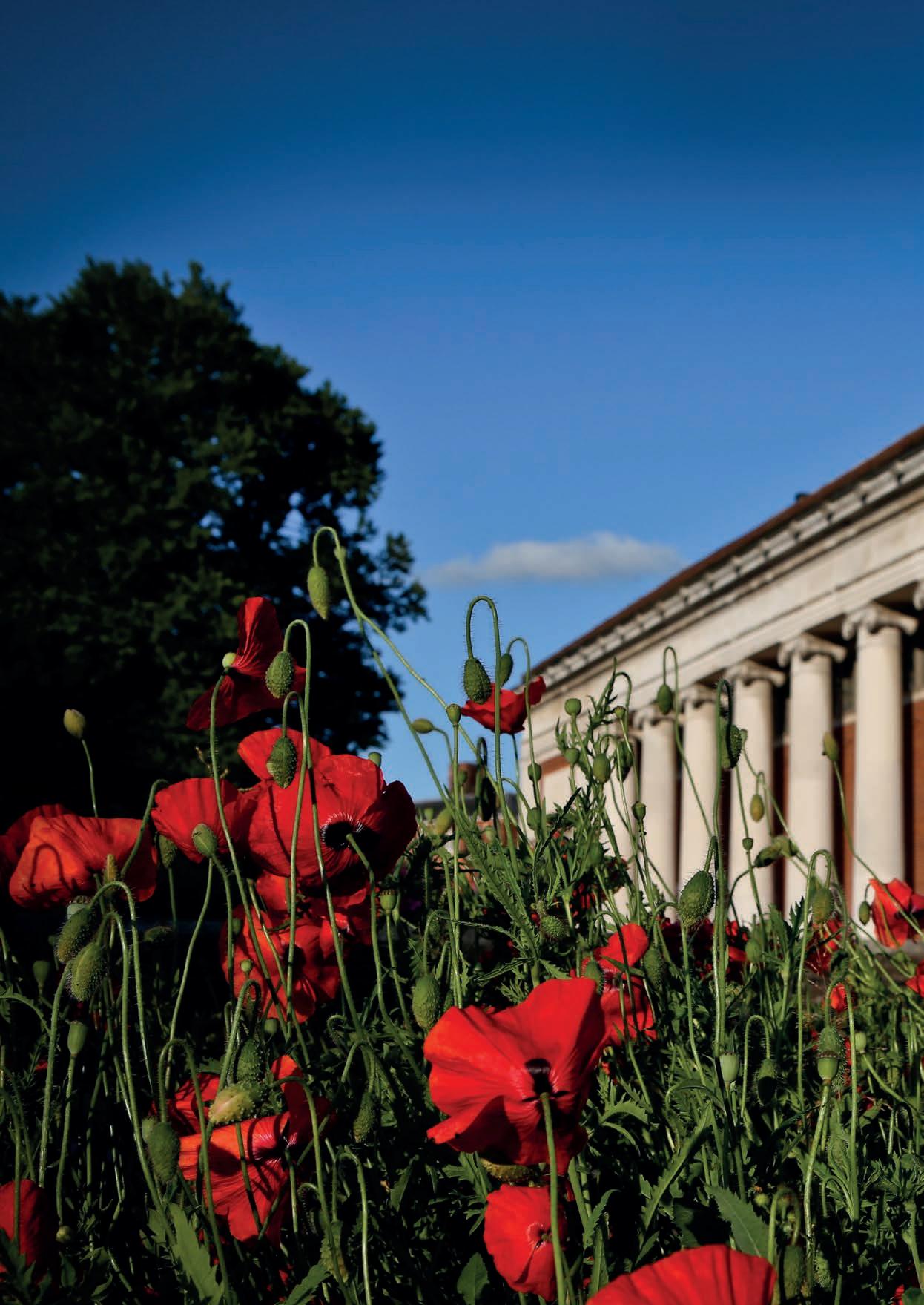 Our Memorial begins immediately as you step through the great West door of the chapel, and its ideal is carved on the stone of Remembrance at your feet, ‘Let us make earth a garden in which the deeds of the valiant may blossom and bear fruit.’ You stand there and you look to the west and the setting sun … and you have the whole, the great steps, the forecourt, the terrace, the hall itself and the garden beneath your feet, a hallowed acre, over which the chapel presides, and of which it is an integral part. It was in order that our most sacred building might be exactly there that we undertook the great labour of raising this hall on a site which was difficult and insecure: now that by the skill of our architect and the engineers we have succeeded, it seems to have been well worth doing.