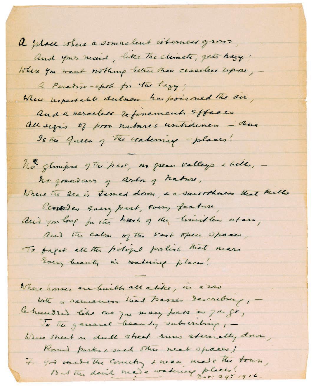 For the world’s events have rumbled on since those gagged days, Like traffic checked whilst at the crossing of city-ways: And the haunted gap in your mind has filled with thoughts that flow Like clouds in the lit heaven of life; and you’re a man reprieved to go, Taking your peaceful share of time, with joy to spare, But the past is just the same – and War’s a bloody game …