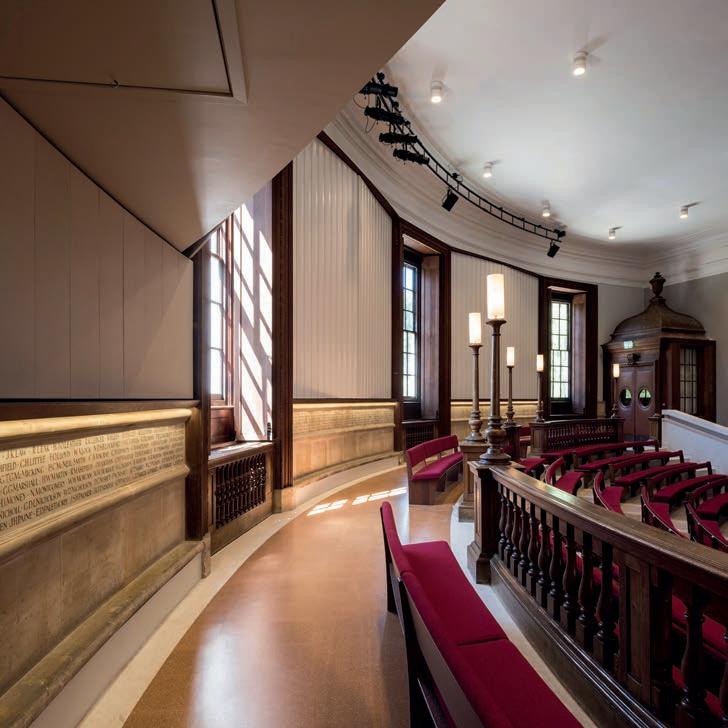 At the outset of this article, I wrote that four people’s names come to my mind when thinking back to the restoration of the Memorial Hall. There are in fact hundreds more, for during the transformation of the Hall, the 749 young men who died in the Great War remained, above all, our guiding stars. Nothing was to obscure their names from sight. Nothing was to detract from these names, which we sought to enhance by cleaning the stone in which they are engraved and adding lighting to bring them further into evidence.
