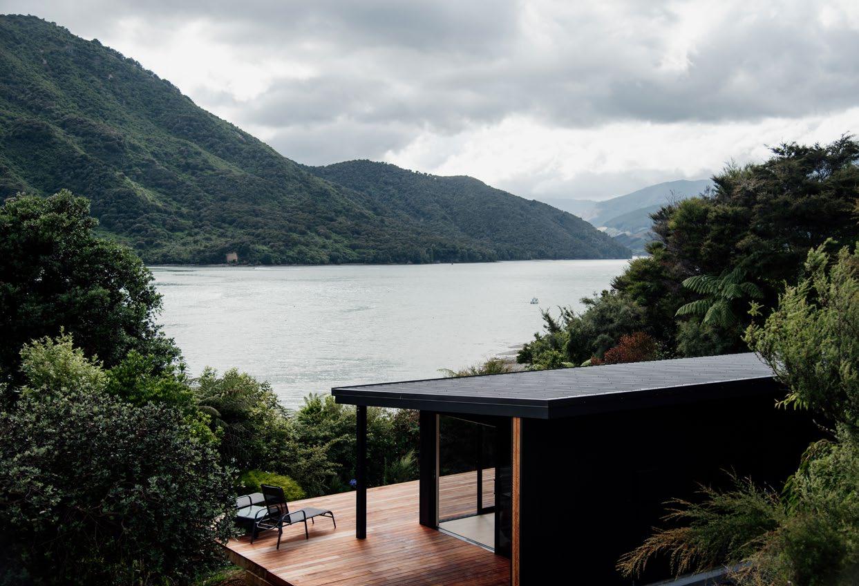 As the rebuild progressed the owners realised that they wanted the original section of the house to have more than a facelift. Already reclad and re-roofed and with new aluminium joinery installed, they made the decision to redecorate it and renovate the bathroom. The resulting bach looks like a completely cohesive brand-new build. The Flaxpod matt colour Stria cladding and roof was chosen by the owners to blend in with the surrounding bush while the contrasting cedar provides a warm contrast.