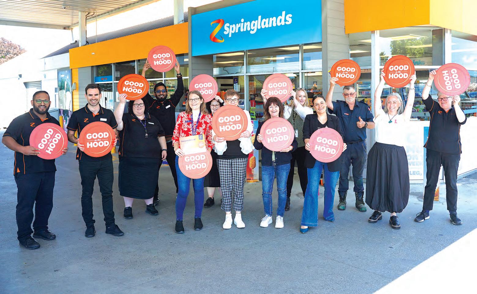 Z station operators and local group representatives benefitting from this year’s ‘Good in the Hood’. (L/R) Sijin John, Jamie Hobby, Sarah Warner, Merwin Edward, Amber Clark, Bernie Warner, Michelle Way, Bridget Nolan, Vanessa McDonald, Leigh Somerville, Wayne Wytenburg, Allanah Burgess and Debbie Tai.