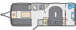 Fun and funky. A compact camping vehicle for your BIG ADVENTURE. 2 berth, overall length 5.1m, MRO 932kgs. Whale gas and electric heating. Shower/toilet/83 ltr fridge.