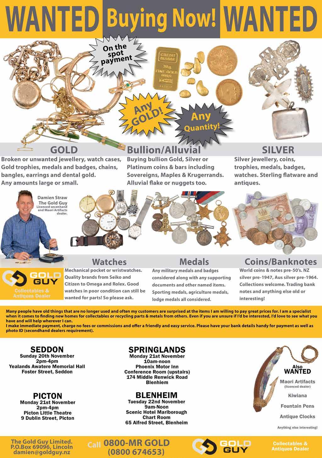 BLENHEIM PROBUS CLUB Retired/semi-retired? Enjoy good fellowship? We’d love to see you at our meet ings, 1st Wed of the month (except Jan), 10am, Wesley Centre. Coffee mornings & outings as well. Ph. Raewyn 5784576 or Robert 5788938
