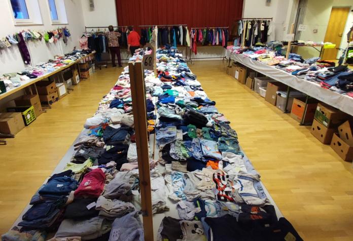 brachtenca.3.000Stückezum Verkauf.DiesegroßeMengewird vondenFrauensortiert,gestapelt nachGrößenundaufgehängtbzw. aufgestellt.Ichbedankemichbei meinemTeam,dasauchfürKaffee undKuchenzuständigist,undden InteressiertenbeimSuchenhilft. WeitersbedankeichmichbeiMag. GerhardPumbergerfürdenPfarrsaalundbeimBauhoffürdiverse Lieferungen.EineBesonderheit stellteheuerderAnlieferungstag dar,derauchderinternationaleTag derFrauenwar.AusdiesemGrund erhieltendieDameneinekleine Aufmerksamkeit.AmVerkaufstag herrschtegroßesGedrängeund vieleArtikelwurdengekauft.Es wurdensehrvieleTortenmitgenommenundauchvorOrtkonsumiert.ImHerbstwirdwiederder WinterKindersachenbasar veranstaltet.