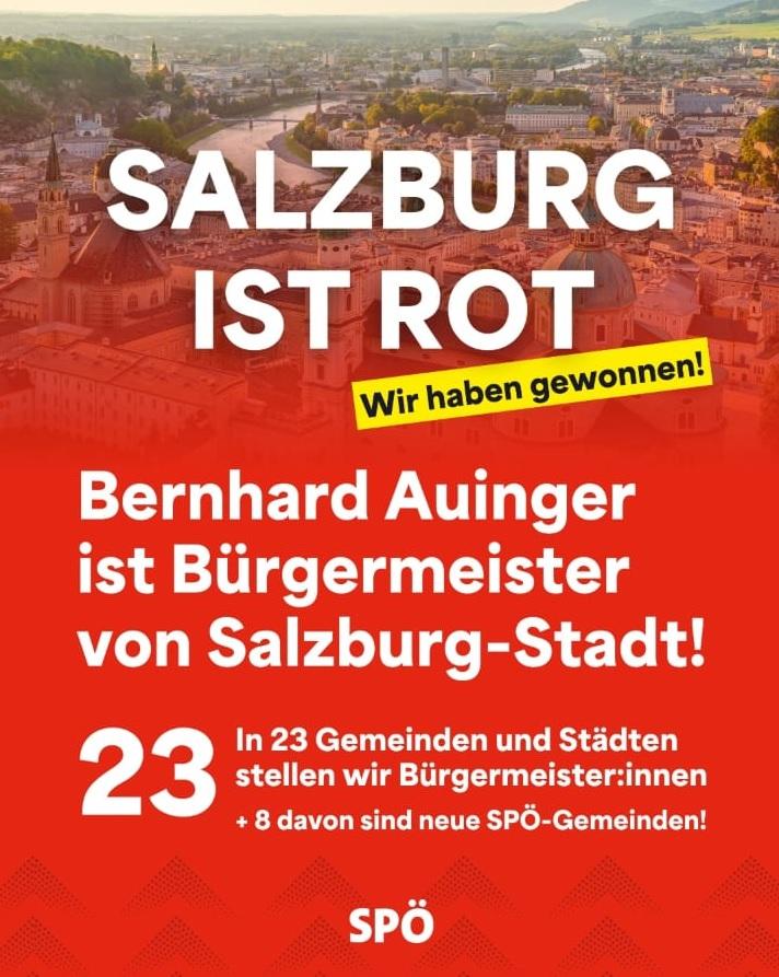 DieSalzburgerinnenundSalzburgerhabendenWahlkampf eröffnetundbereitsgewählt.Bei denGemeinderats-undBürgermeisterwahlenhatdieSPÖsehrgut abgeschnitten.Einerfreuliches Ergebnis,wennmansieht,wohin derTrendgeht.