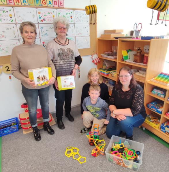 mitwarmenGetränkenversorgt. VondiesemErlösüberreichtendie SPÖ-FrauendemKindegartenden BaukastenCondismagnetische Bausteine.