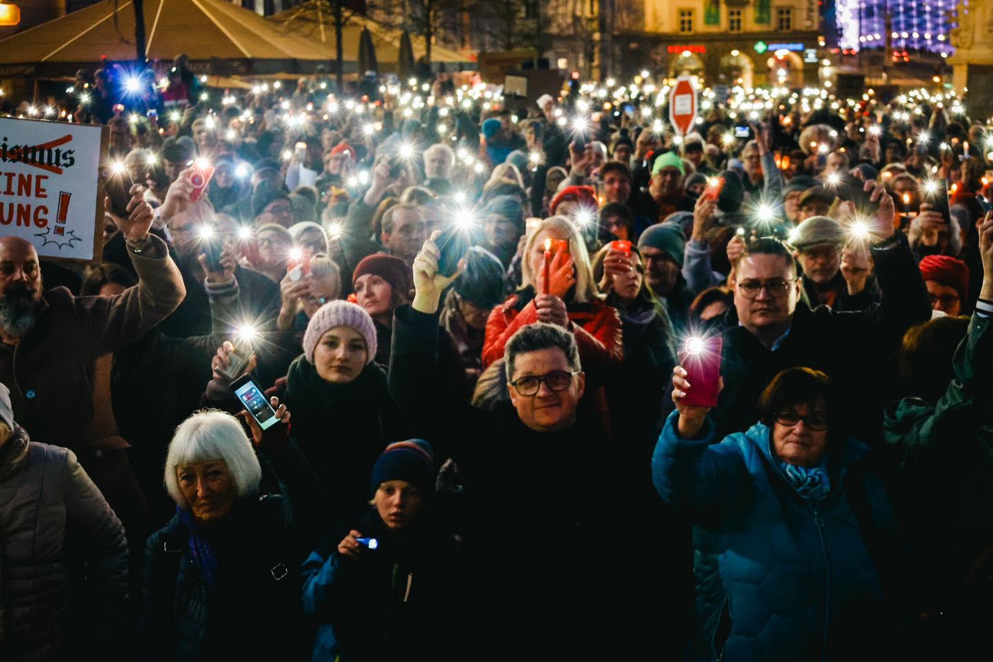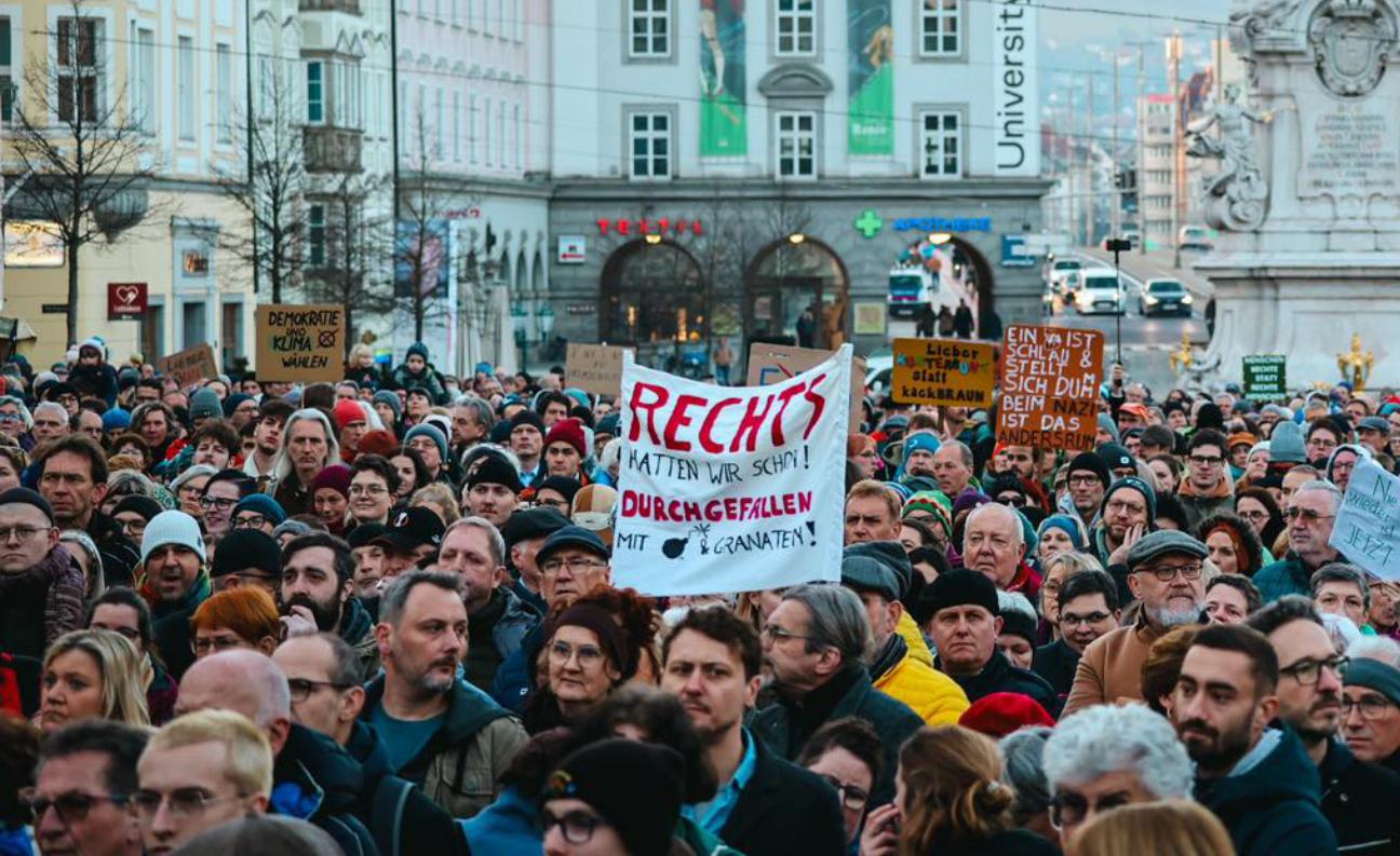 AmSonntag,25.02.2024kamen4.000 MenschenaufdenLinzerHauptplatz,um gegendenaufkeimendenRechtsextremismuszudemonstrieren.
