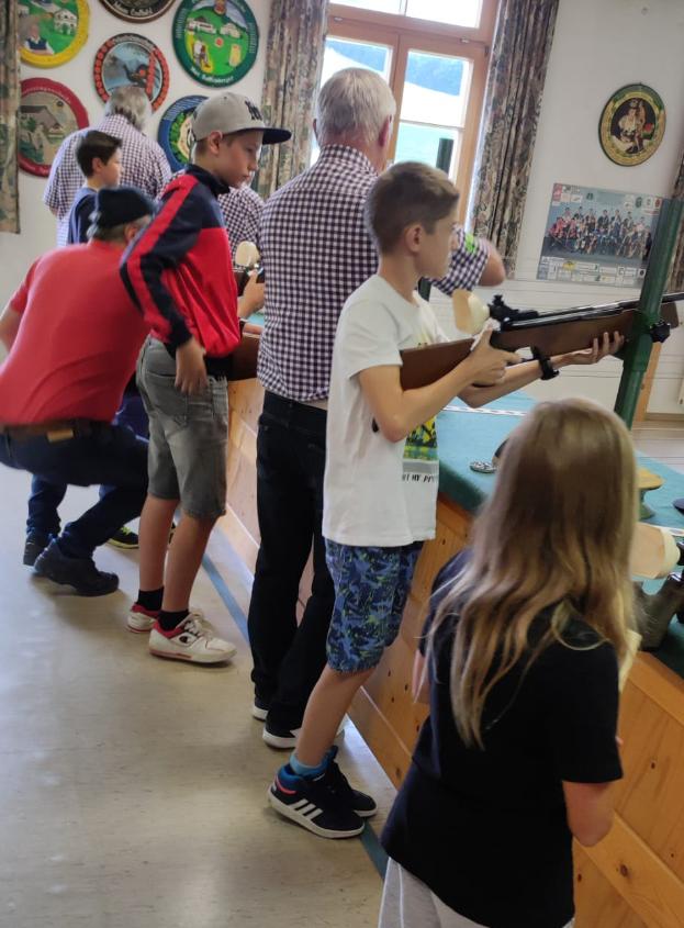 beimLuftdruckgewehrschiessendabei.Inden Pausenwurdensievonden Betreuernversorgtundwir hattenalleeineMenge Spaß!