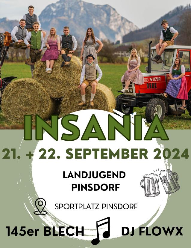 Am21.September2024feiert dieLandjugendPinsdorfihr erstesLandjugendfest „Insania“ab19Uhraufdem SportplatzPinsdorf.