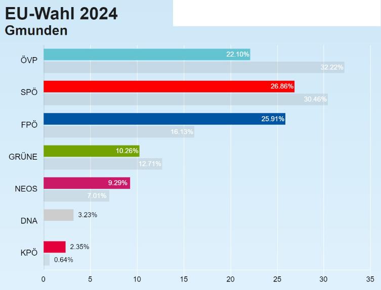 BeiderEuropawahl2024wurdedie SPÖimBezirkGmunden trotz schwierigerRahmenbedingungen undVerlustenzur stärkstenKraft. WährendinGesamtösterreich andereParteienbeiderEuropawahl 2024deutlichzulegten,gelanges derBezirks-SPÖ,dieSpitzenposition zuerringen.