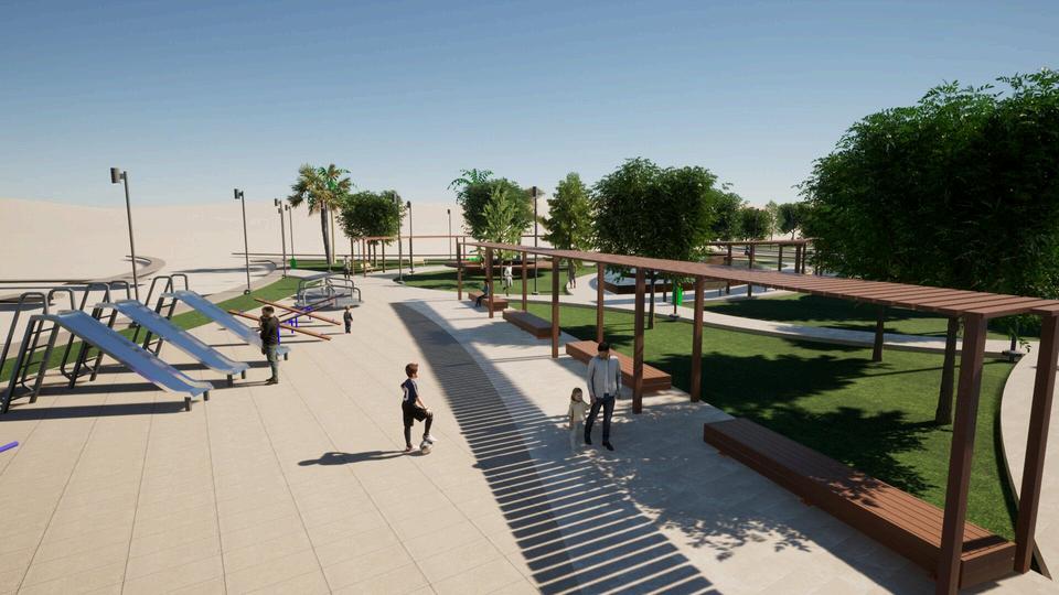 Se implementaron pérgolas como puntos de descanso y también como espacios para observar la recreación activa. Estos elementos propor-