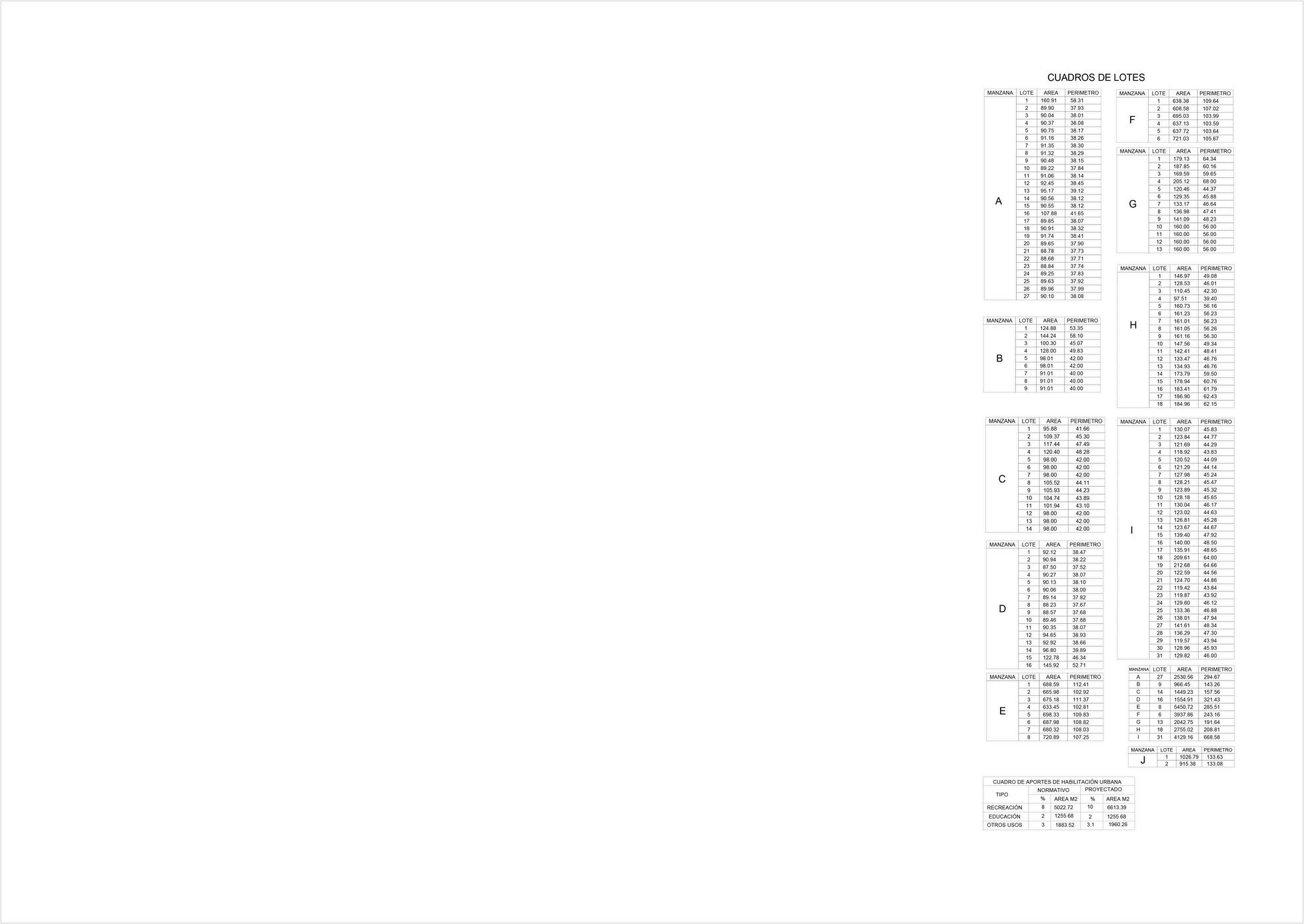 El orden morfológico se desarrolla a partir de la formulación de la lotización en la habilitación urba- na. La principal estrategia consiste en dividir los espacios en proporciones equilibradas, organizando los volúmenes. Los vacíos se forman con las áreas designadas para aportes como recreación, educa- ción y otros usos