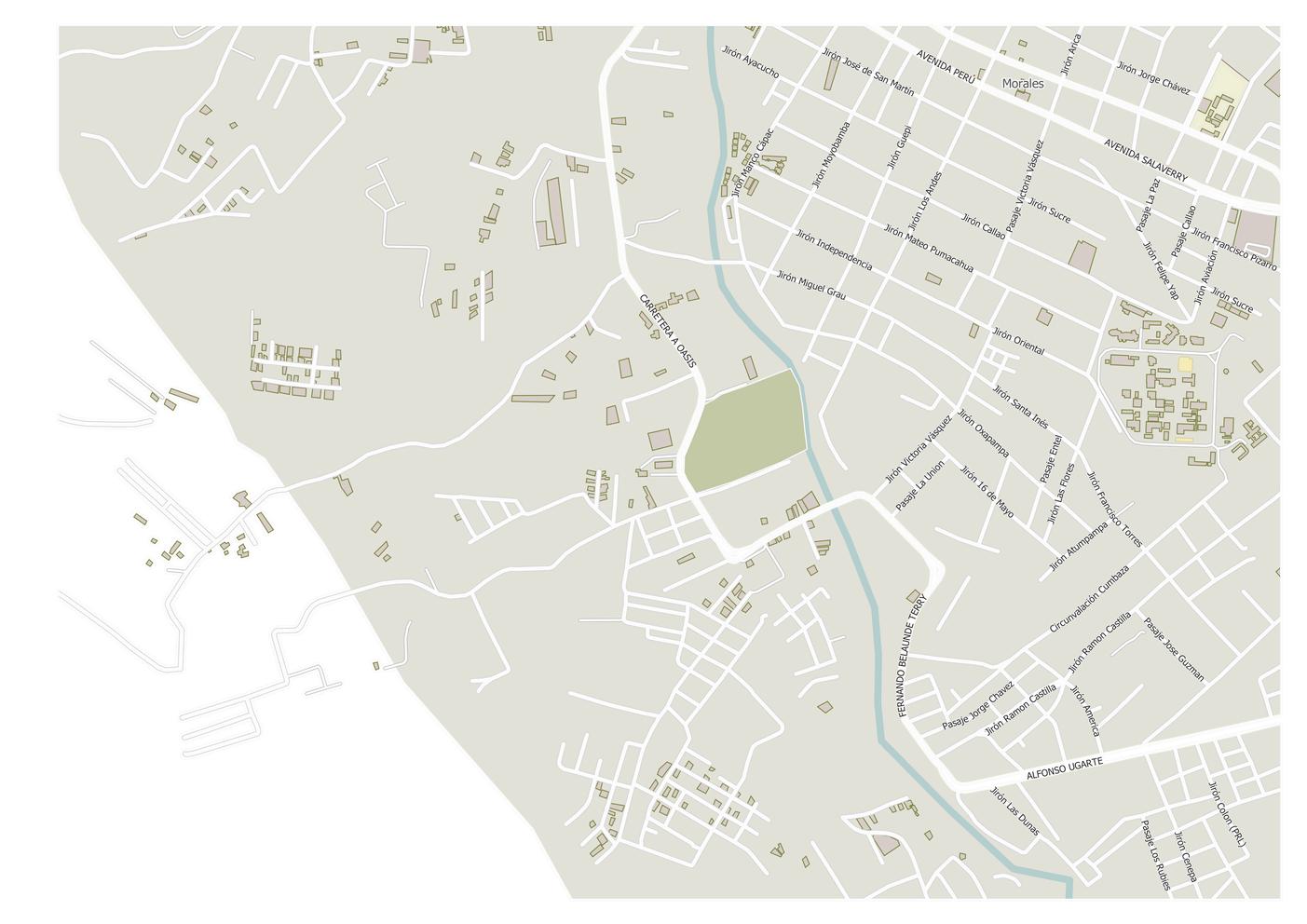 El terreno de intervención para desarrollar la habilitación urbana, se encuentra en Perú, Distrito San Martin, en el distritos de Morales. Abarca 62,784 m2 de área en total, en las cuales no presenta una topografia pronunciada.