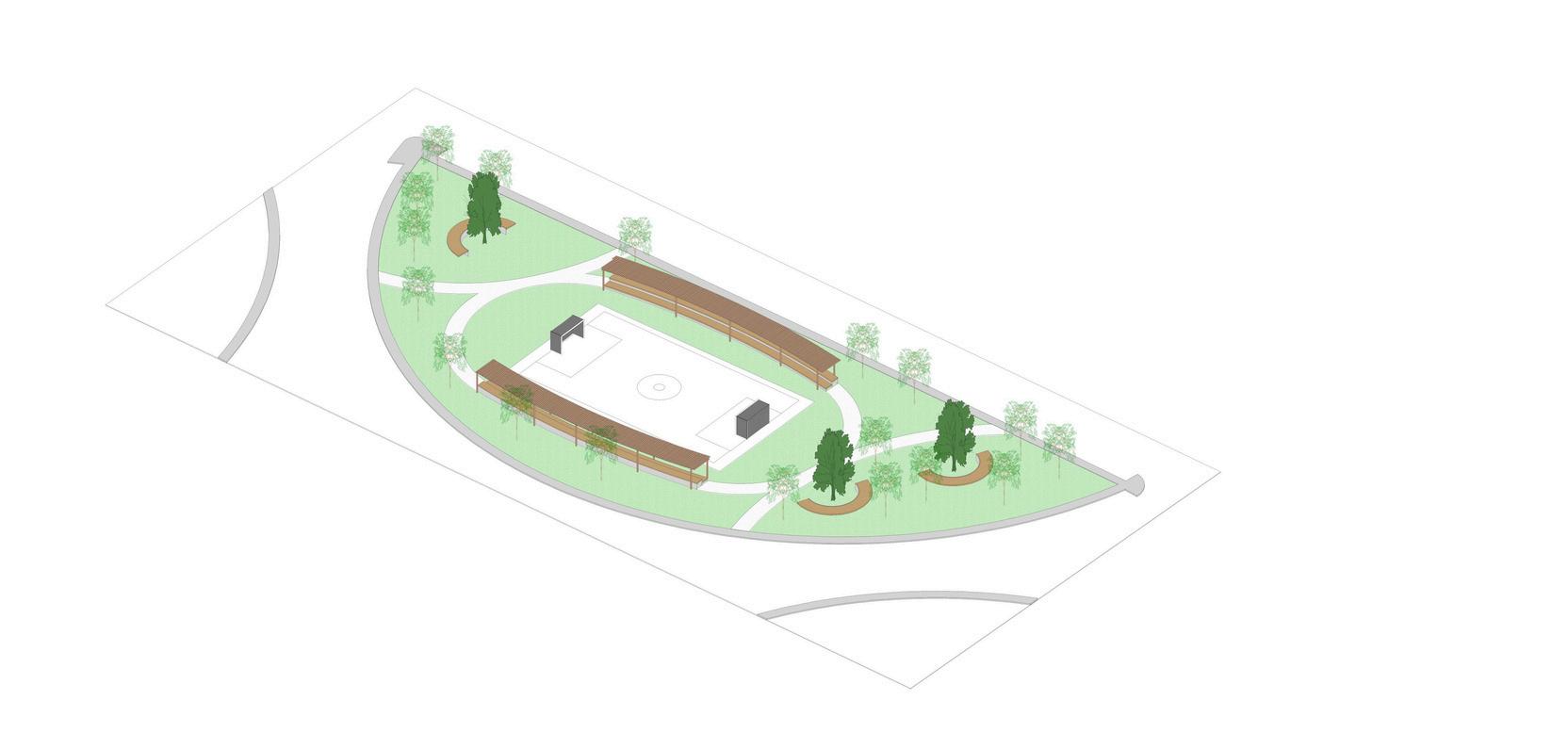 Se encuentra al frente de la zona de recreación pasiva, complementándola con el objetivo de ofrecer opciones tanto de recreación pasiva como activa, promoviendo así una conexión entre los habitantes de la habilitación