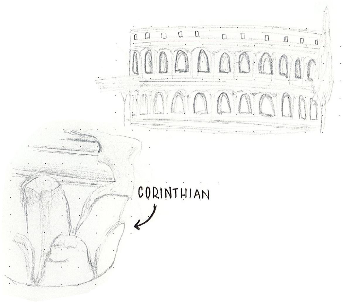 In summer of 2023 I was fortunate to have the opportunity to take place in a study abroad program in Italy. This was hosted by the Kansas State interior design program and was focused on the architecture in Italy. I travelled the country with about 20 classmates and we would occasionally take time to sketch the architecture we saw. This trip taught me a lot about the history of architecture.