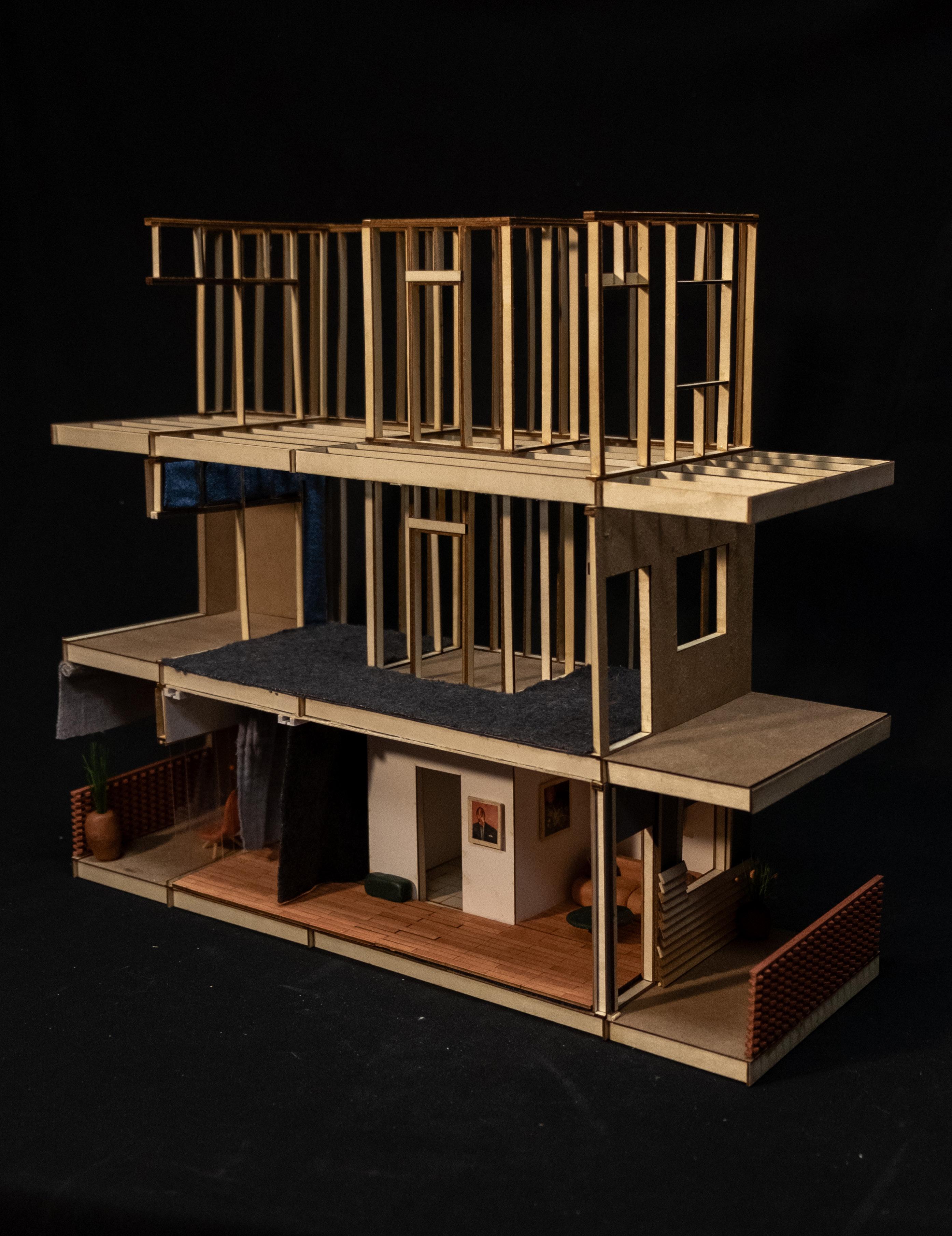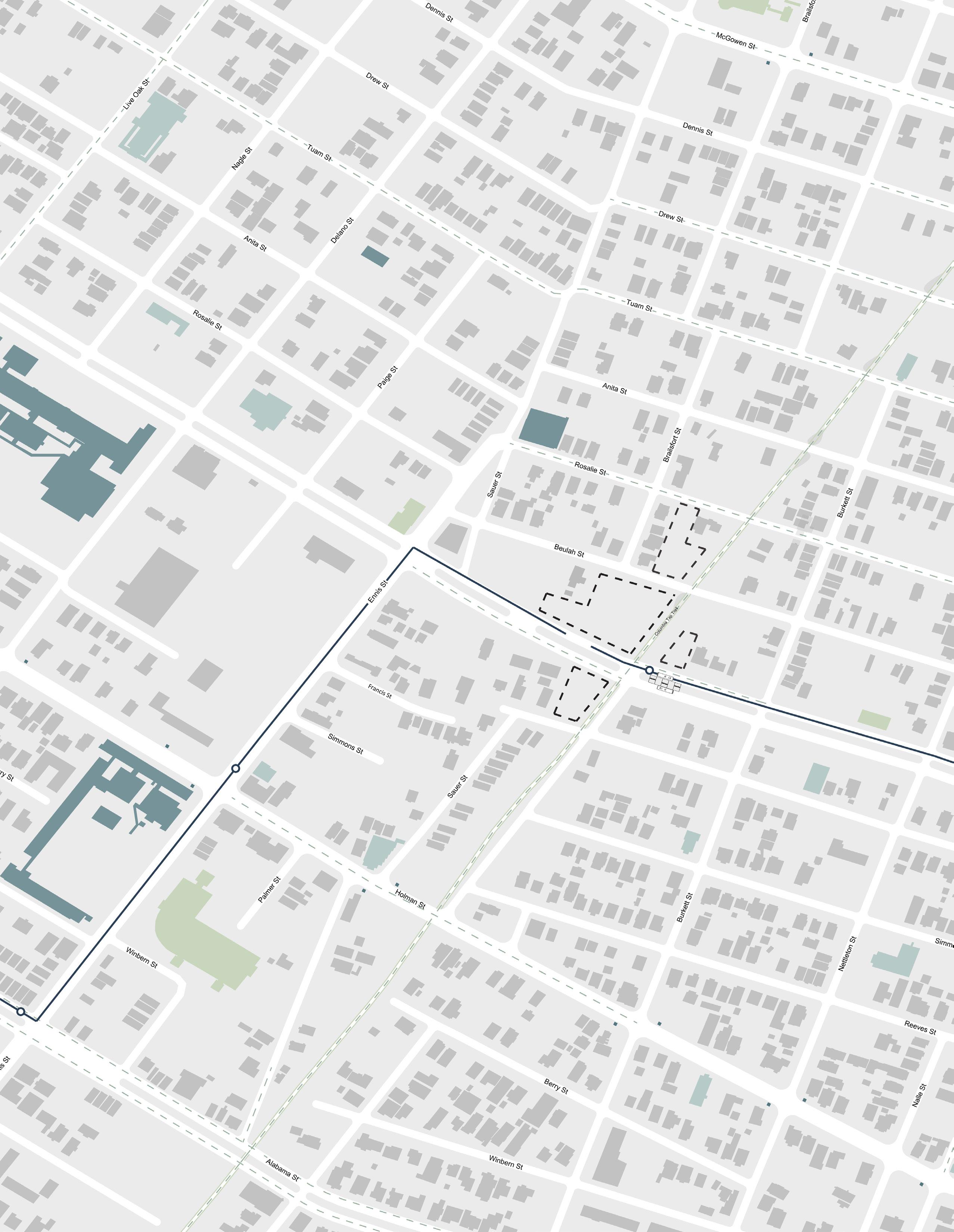This project designed in collaboration with three other students envisions a sustainable housing development in Houston’s Third Ward. Fabric is a central theme inspired by the neighborhood’s history with cotton production and textiles. Along side the site is the Columbia Tap Trail, which was once a railroad that played a keyrole in transporting cotton all while keeping the area connected to a larger market. Just as fabric connects people through clothing, this project connects residents to their neighborhood’s history, community and environment