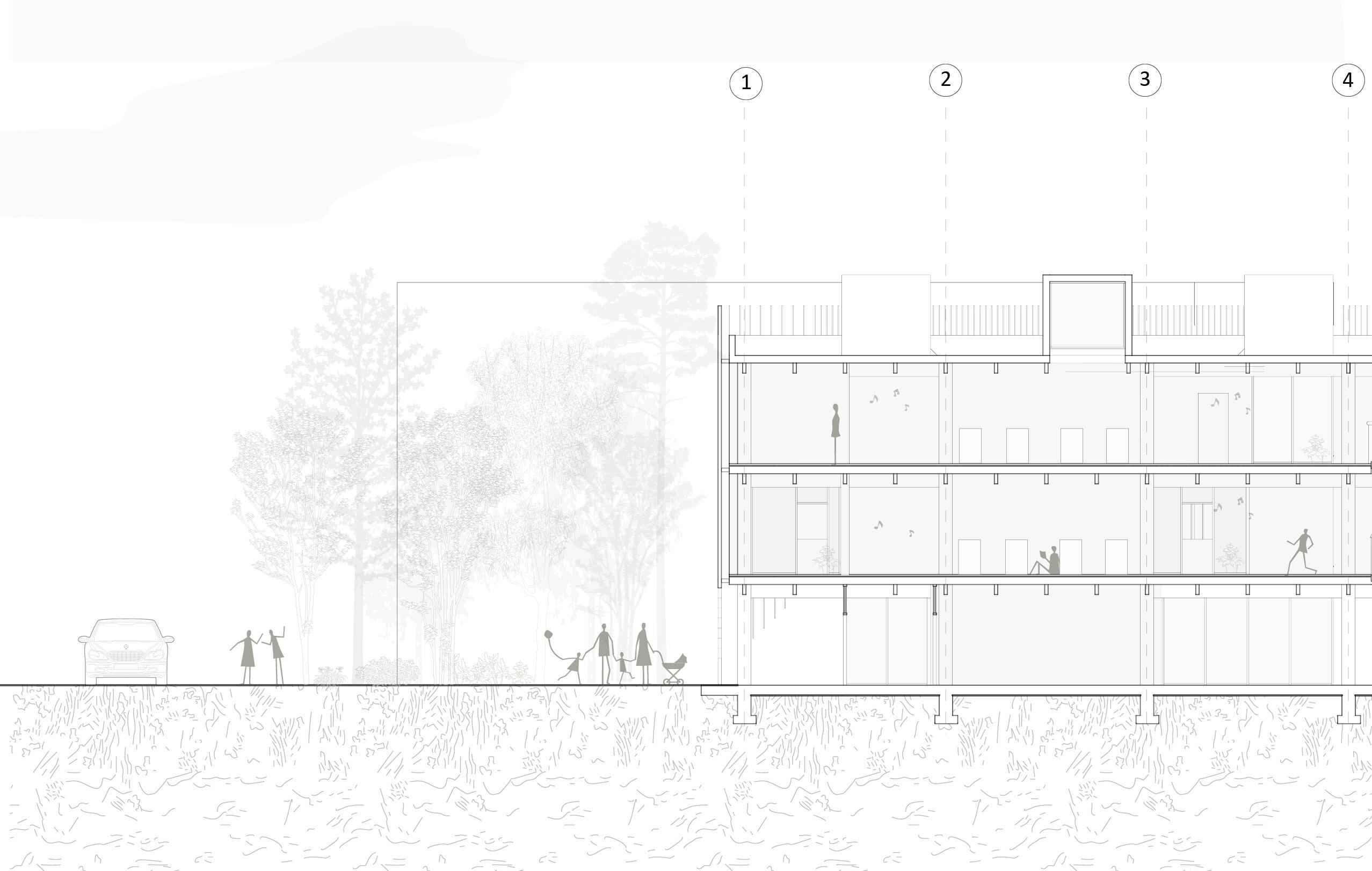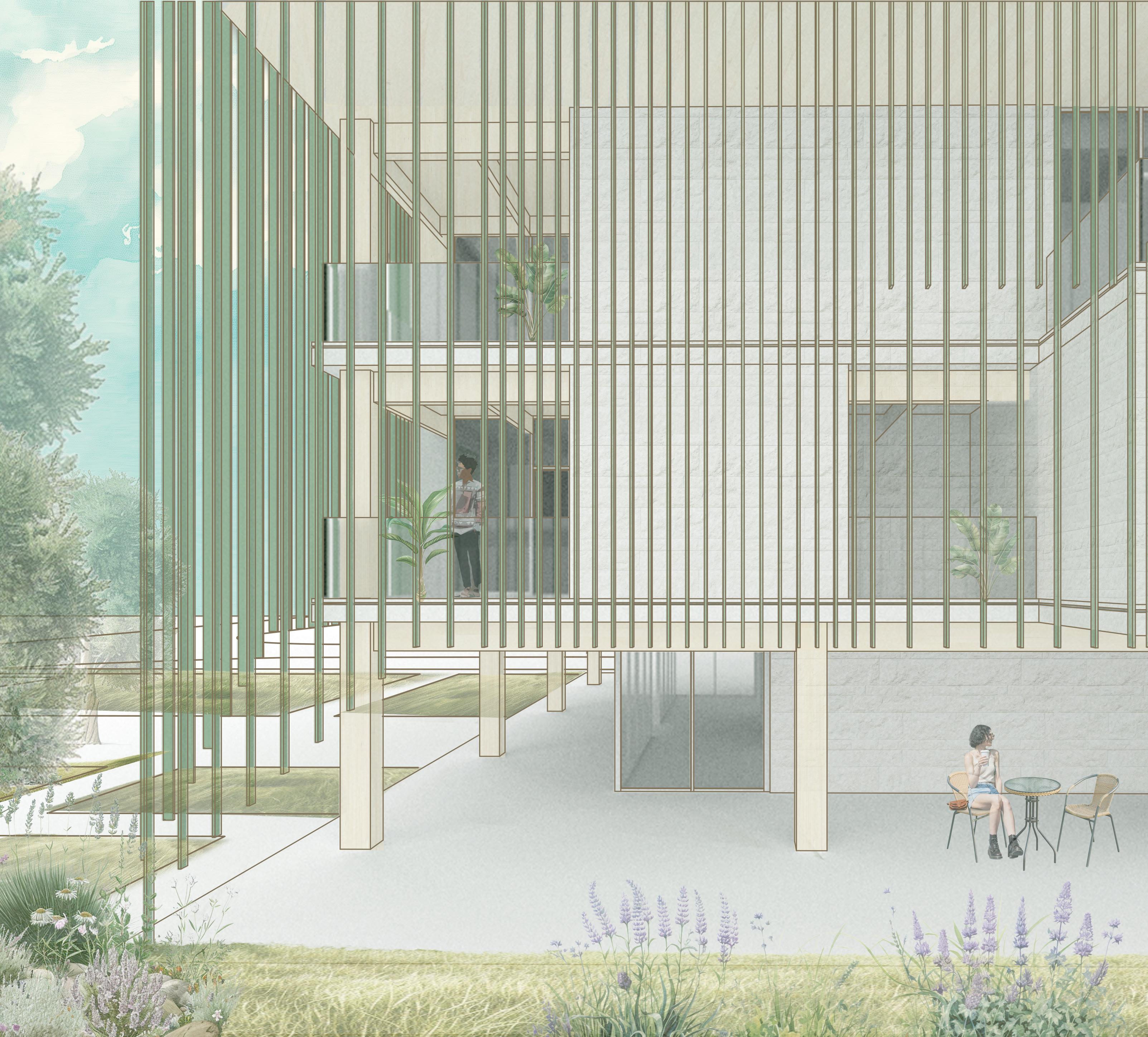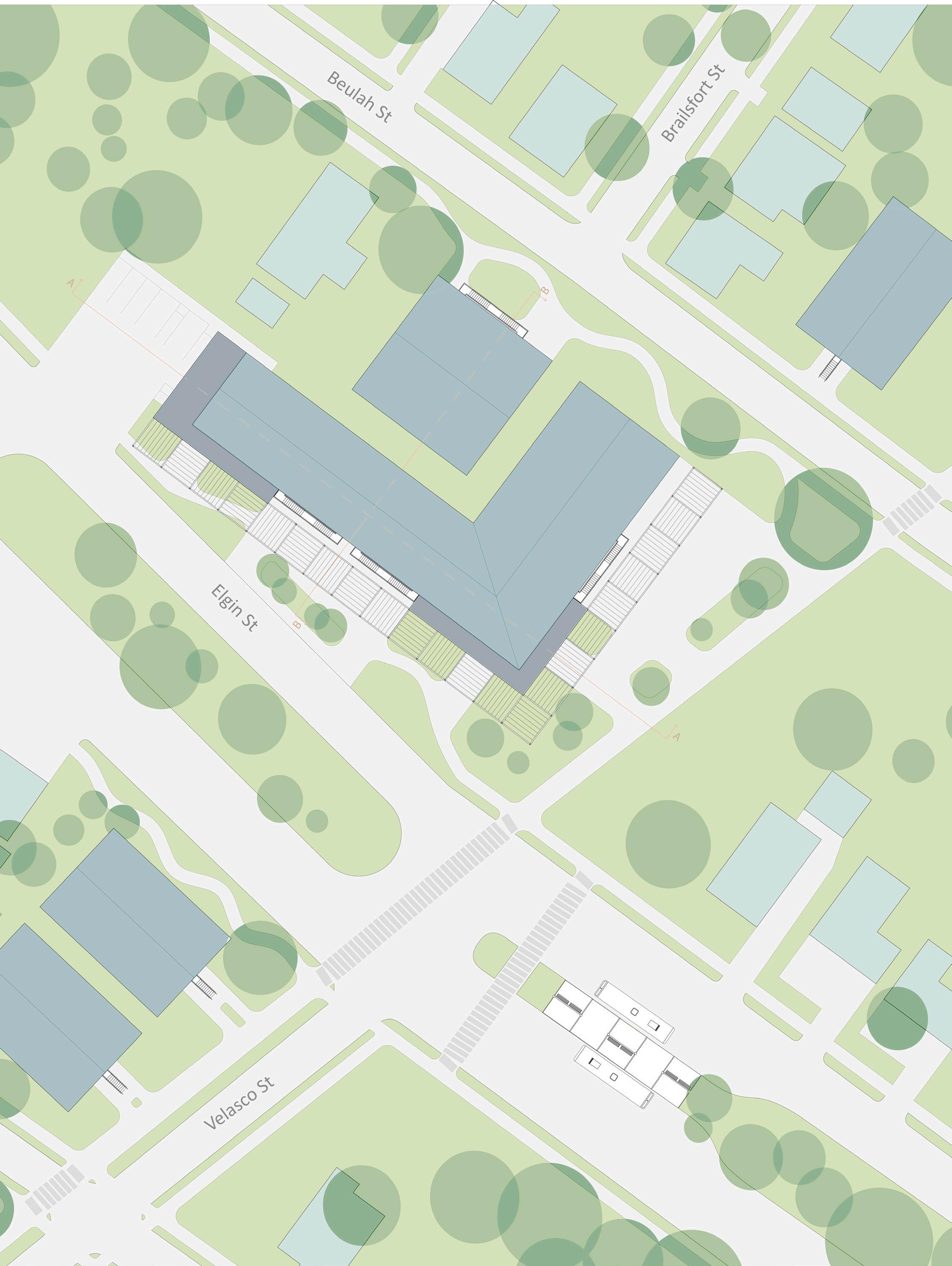 This group project, developed in collaboration with two other students, explores the intersection of sustainability, preservation and cultural heritage through the design of a music archive in Third Ward, Houston. The site is located along Elgin Street next to El Dorado Ballroom, a key part of the neighborhood’s jazz and blues legacy. This music archive is meant not only to protect an extensive vinyl collection, but to also honor the neighborhood’s musical heritage.