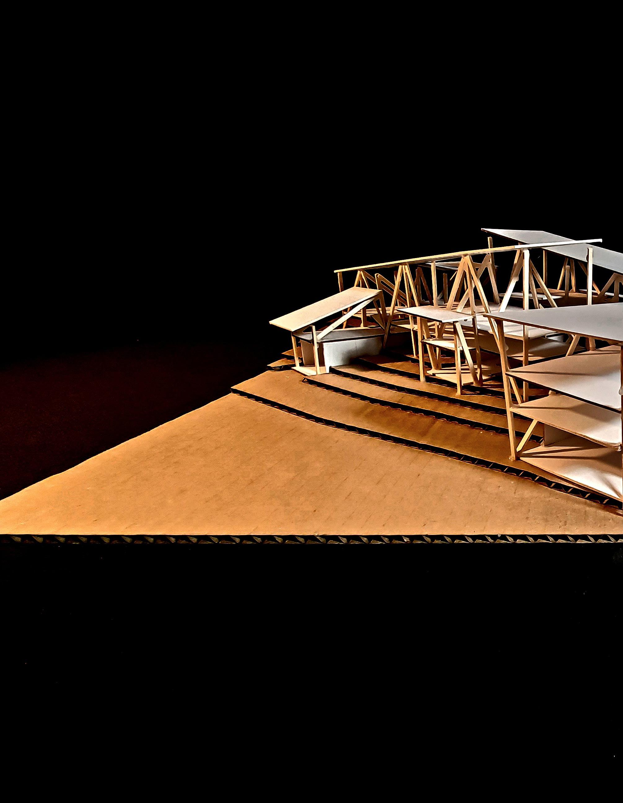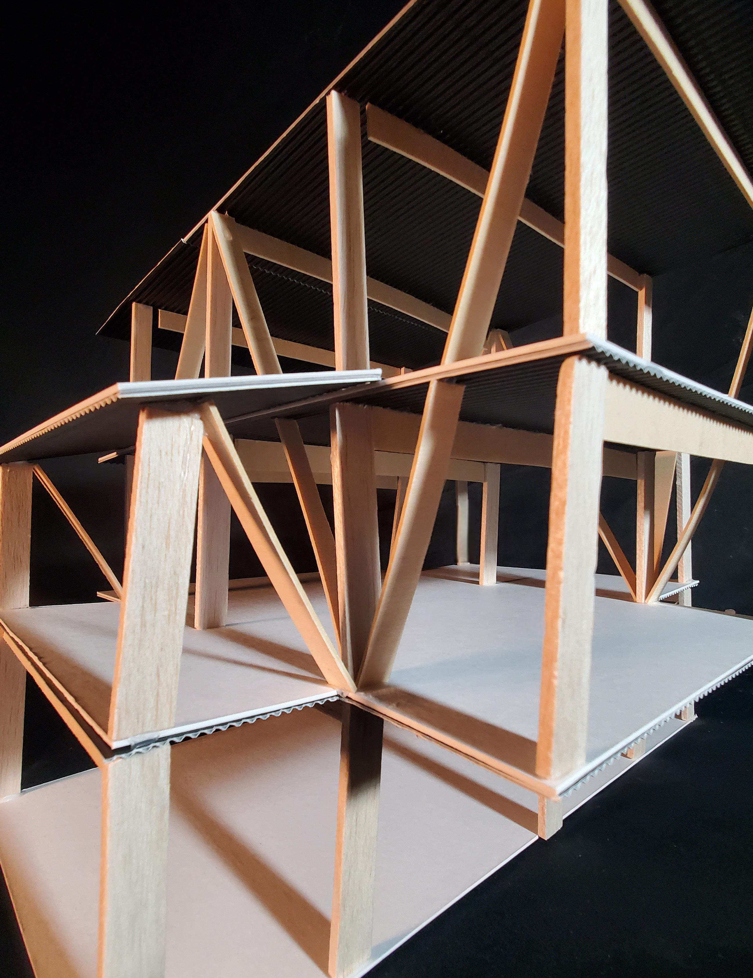 This project responds to a need for sustainable architecture and a community center in Channelview, Texas by proposing the creation of The Steel Joint, a scrap metal salvage facility that reuses salvaged steel as it’s primary material. The design draws inspiration from the 90-degree intersections of the buildings, symbolizing both the literal and metaphorical connections between the region’s industrial past and the future of sustainable building practice.