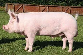 The white-skinned boars of this breed are robust and well-adapted farm animals because of their size and struc-