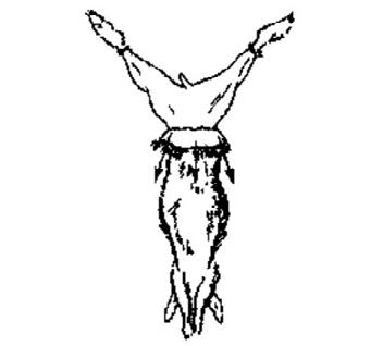 Figure 1.3 Skinning a rabbit – skin pulled to bare the trunk and then forelegs.