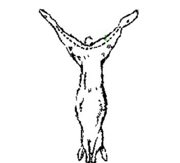 Figure 1.1 Skinning a rabbit - skin cut between the thighs.