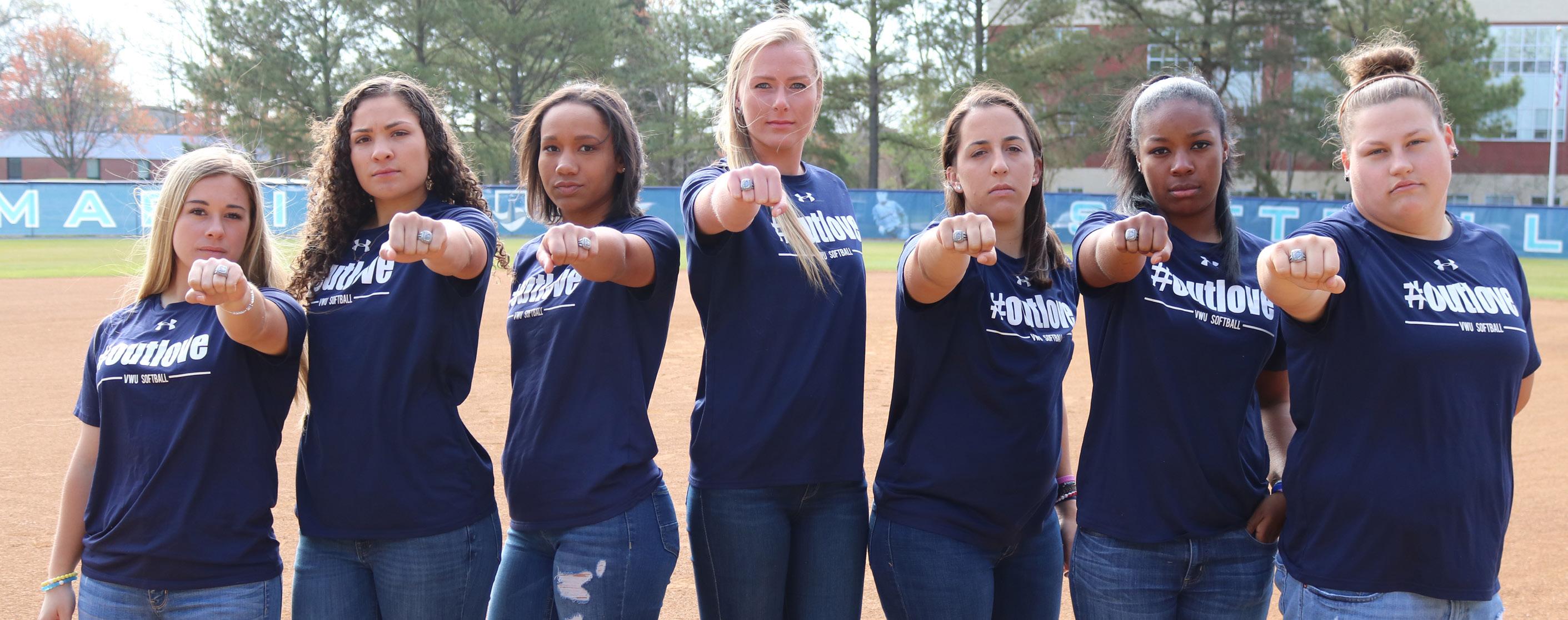 Sam Jackson Photography| Courtesy Pictured left to right: Amy Large, Kiersten Richardson, Amanda Archer, Alana Peters, Teresa Cardamone, Alexis Smith and Cassetty Howerin pose with their championship rings.