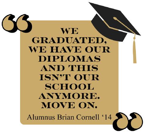 name change announcement. “I’m here to rally with fellow alumni and just to make our voices heard. It’s very disheartening when you kind of built your identity around your college,”