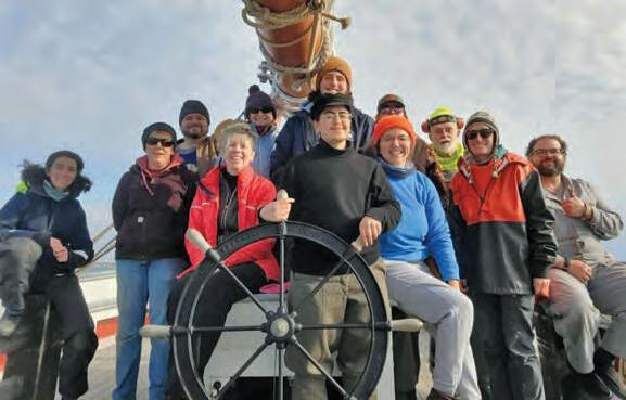 and that I had once been outspoken against doing so. Yet here we were, nineteen years and a new hull later, a bunch of like-minded people helping her young crew to bend on sails, move ballast around, and get underway again, literally out of the ashes.