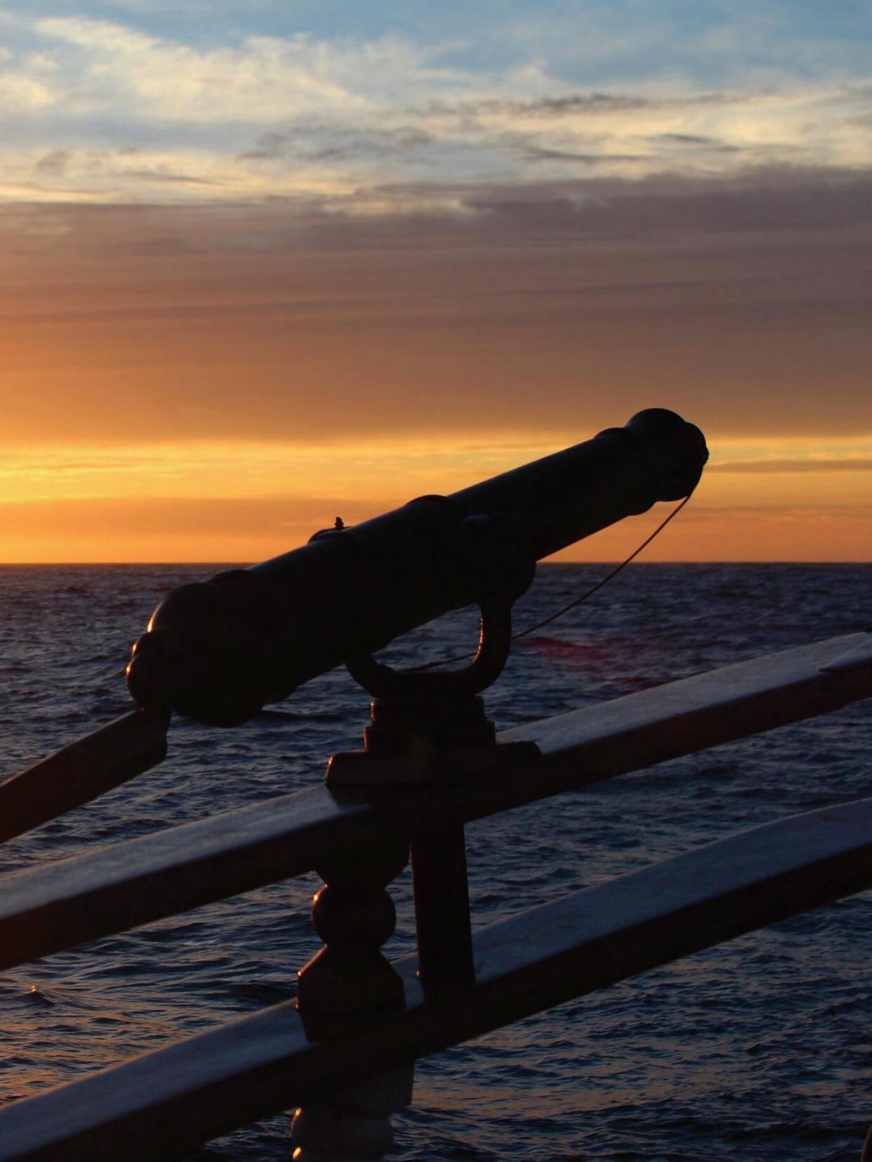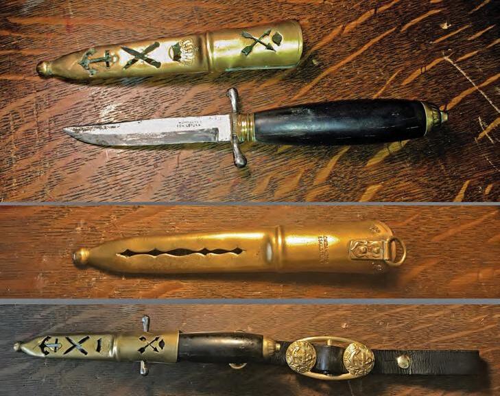 ANSWERS: A) San Salvador, B) Moshulu, C) Red Witch, D) Fair Jeanne, E) Sorlandet, F) Picton Castle G) Cory Cramer,I found this knife in my grandfather’s carpenter’s shop after he had died. It is a rather small knife but has an interesting brass scabbard that at one time was lined with red leather. The crown and fouled anchor are partly cut out and partly etched. Apparently it is circa 1900 and was made in Eskistuna, Sweden by C.W. Dahlgren, as engraved on the blade & scabbard. A similar knife and scabbard, in inferior condition, sold at auction for $2,000. The scabbard is stamped No.12. I have seen it described as a hunting knife, but find the anchor confusing in that regard. Given its value, I do not use it, but have made a strap with a brass anchor fitting so that I can hang it from the sword belt used with my 19th century Royal Navy uniform, worn for living history events.
