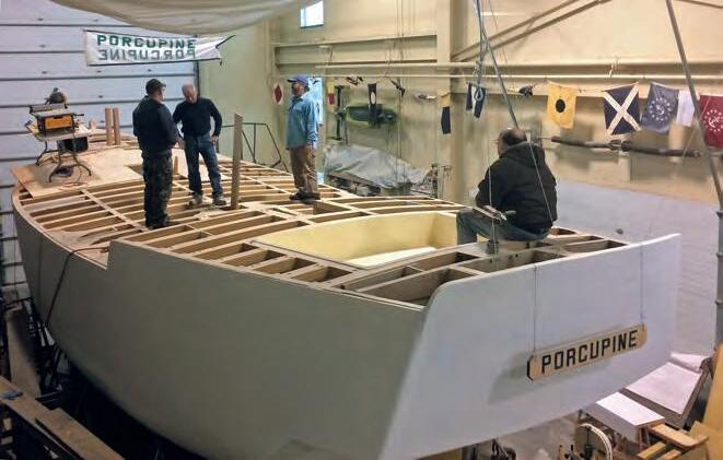 “Given that Lily will be used in warmer climates we are looking at using epoxy and fiberglass-sheathed laminated plywood for the rehabilitation. As we have done in the past, we built a scale construction model in addition to the half model to wrap our heads around exactly what we’re doing. A number of local boatbuilders helped us with the model and design, along with Tom Farrell of Farrell and Norton, who will do the final drawings and submit them to the Coast Guard.