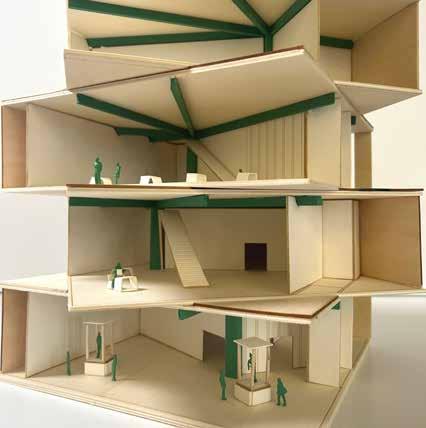 This proposed project is designed to be a multifunctional space with libraries, labs, and exhibitions featuring mardi gras costumes and history. Located on one of the New Orleans ports on the Mississippi River, this building brings the rich history of Mardi Gras to life through its various programs. A shifting tectonic structural system on each floor and an enclosing mesh provide a unique experience for the user as they move throughout the space. It creates pockets of space for exploration and learning.