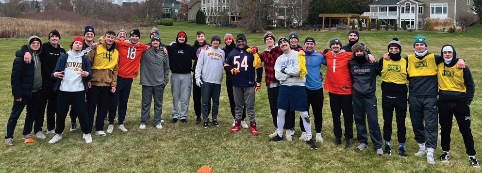 Class of 2018 alumni Jacob Preston, Jack Twitty, Tyler Surges, Jacob Molenhouse, and Austin Flanagan, along with several siblings from other classes and friends, gathered for their annual Turkey Bowl.