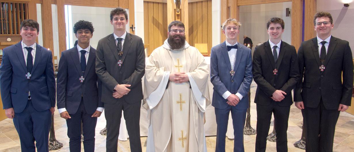 Six members of the Class of 2026 were commissioned as Extraordinary Ministers of Holy Communion on September 3, 2025 in the Abbey Church by Abbot Joel Rippinger, OSB. They will serve the school community this year during All-School and Daily Chapel Masses.