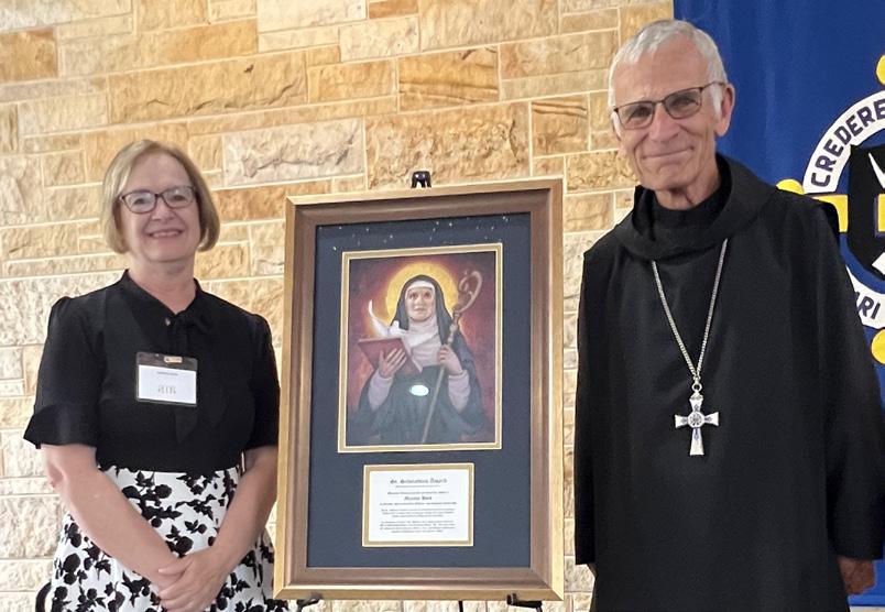 Marsha Bock received the St. Scholastica Award for her faith, generosity, and decades of service to Marmion Academy. Alongside her late husband, Doug, Marsha raised four children, including alumni, Dave ’99 and Mike ’98. For 24 years, she was a cornerstone of the President’s and Principal’s Office, supporting four Academy leaders with grace and wisdom. Her kindness and dedication have left an indelible mark on Marmion and the Abbey community.