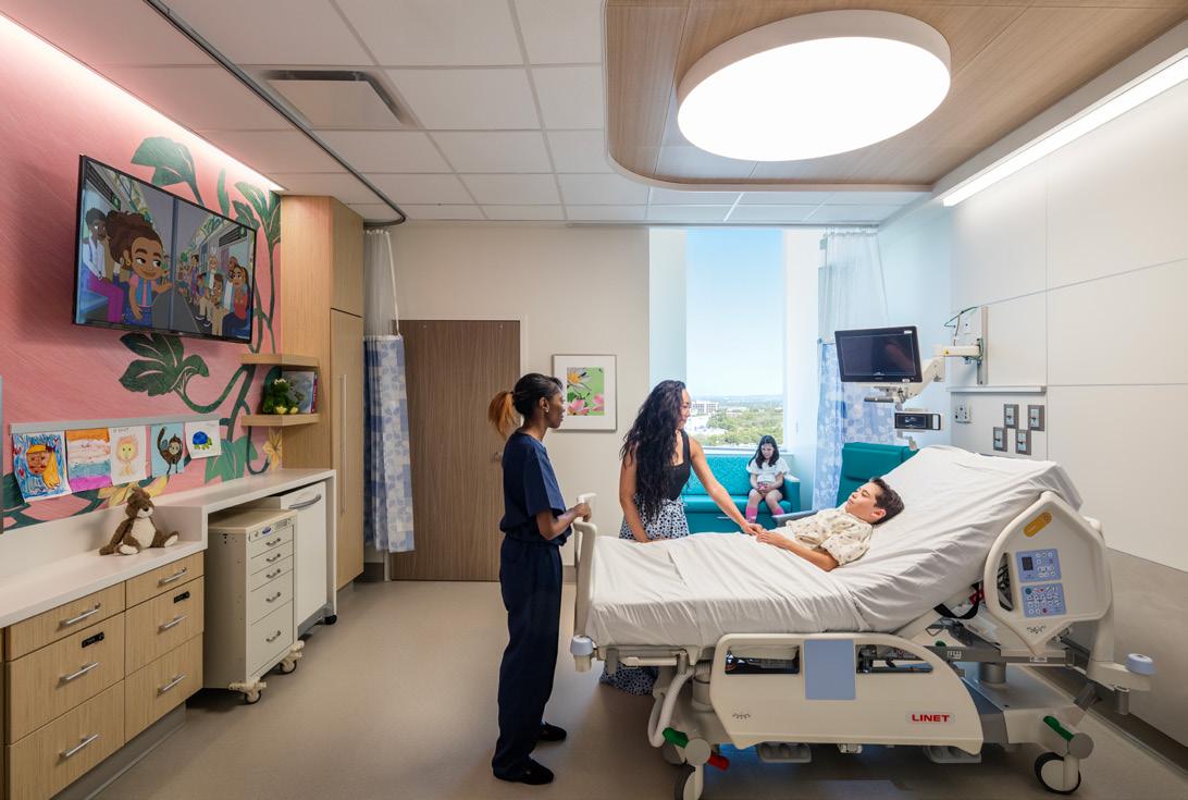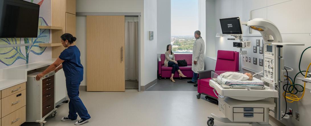 In an effort to consolidate, modernize, and improve care for women and children in the south Texas region, University Hospital embarked on a new 14-story, state-of-the-art Women’s and Children’s Hospital in the South Texas Medical Center. The hospital houses close to 300 beds and contains a dedicated pediatric emergency department, private NICU and pediatric rooms, and a women’s urgent care center. The hospital was completed using evidence-based design principles focusing on family-centered care.