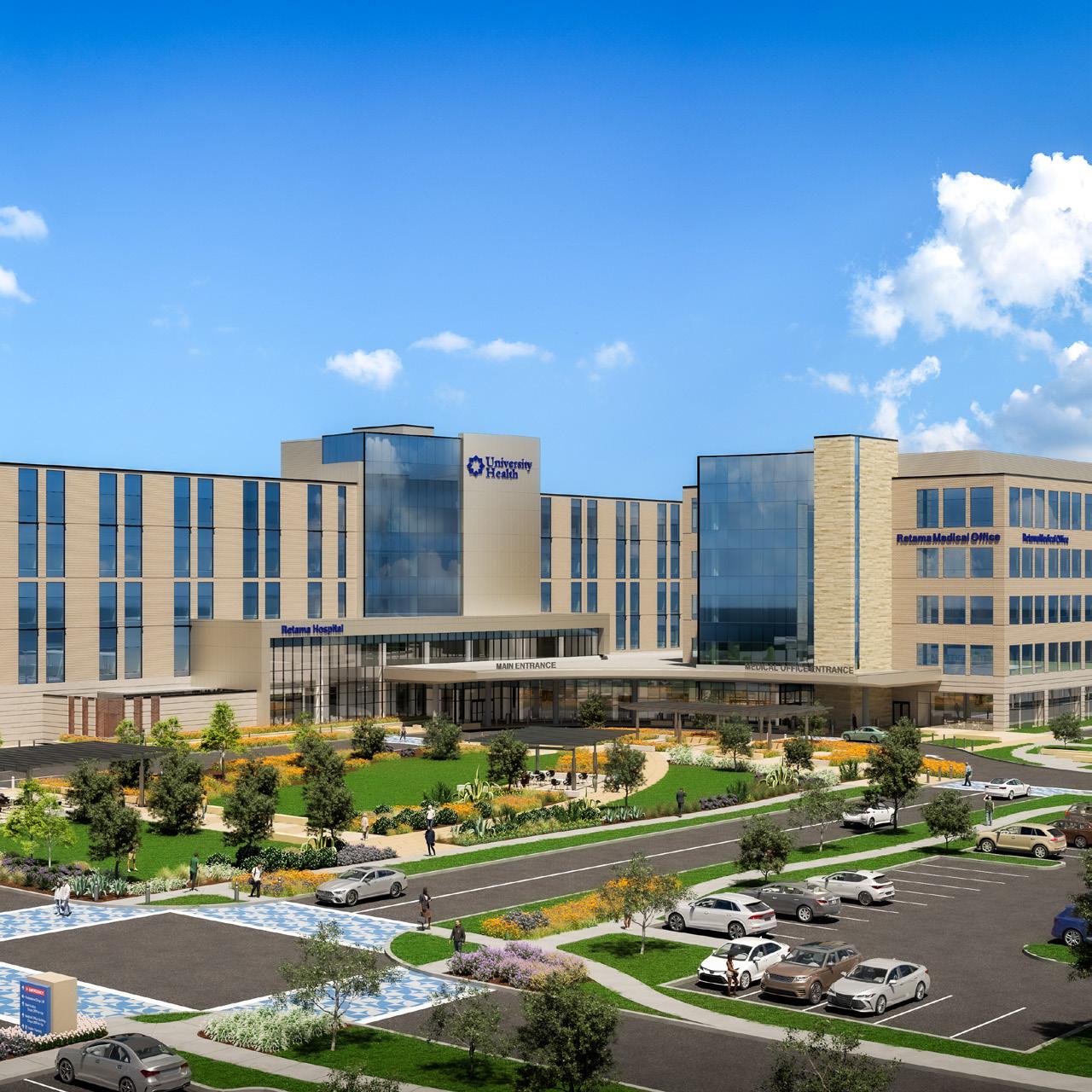 University Health’s Retama Community Hospital, situated in North East San Antonio, is one of two healthcare facilities developed by the county-owned healthcare system in areas lacking adequate medical services. Master planned on 43-acres, the hospital will have an initial capacity of 166 beds, with potential for an expansion to 286 beds. This hospital will offer a comprehensive range of services, including emergency care for both children and adults, modern labor and delivery suites, a neonatal intensive care unit, fully equipped operating rooms, and comfortable hospital rooms.