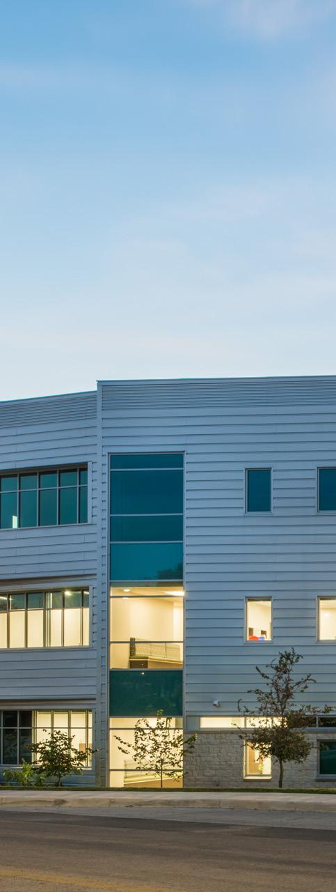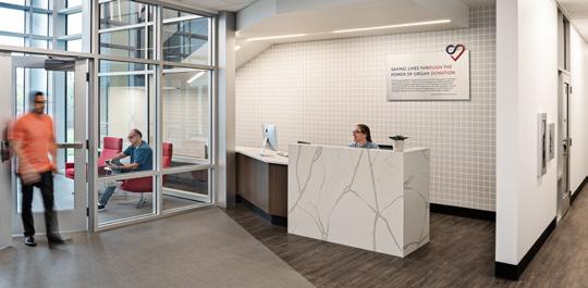 The new office building and event center for the Texas Organ Sharing Alliance (TOSA) acts as a home base for staff, a memorial for families of donors and recipients, and an educational center for the public and medical community.