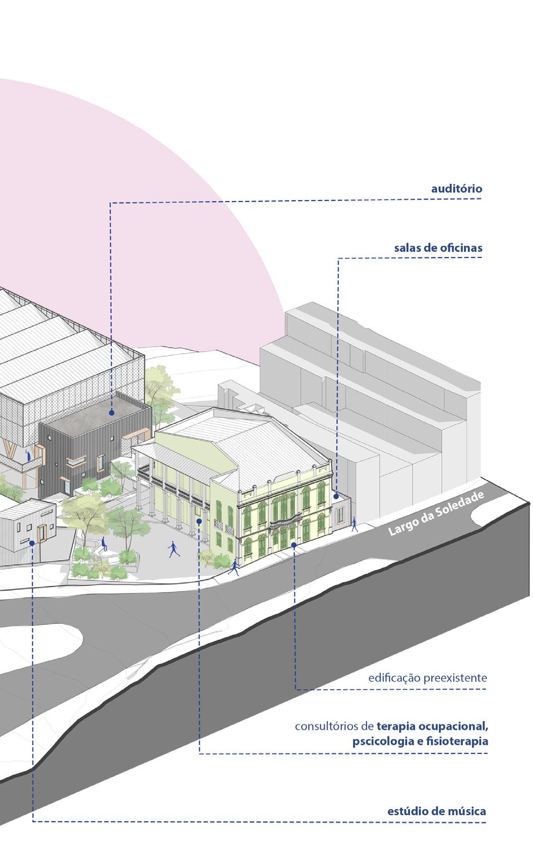 É assim que o projeto arquitetônico se desenvolve por meio da busca de articular o reaproveitamento e ampliação do objeto, explorando o potencial da proposta de implementação de um edifício híbrido que se insere num contexto urbano de transformação.