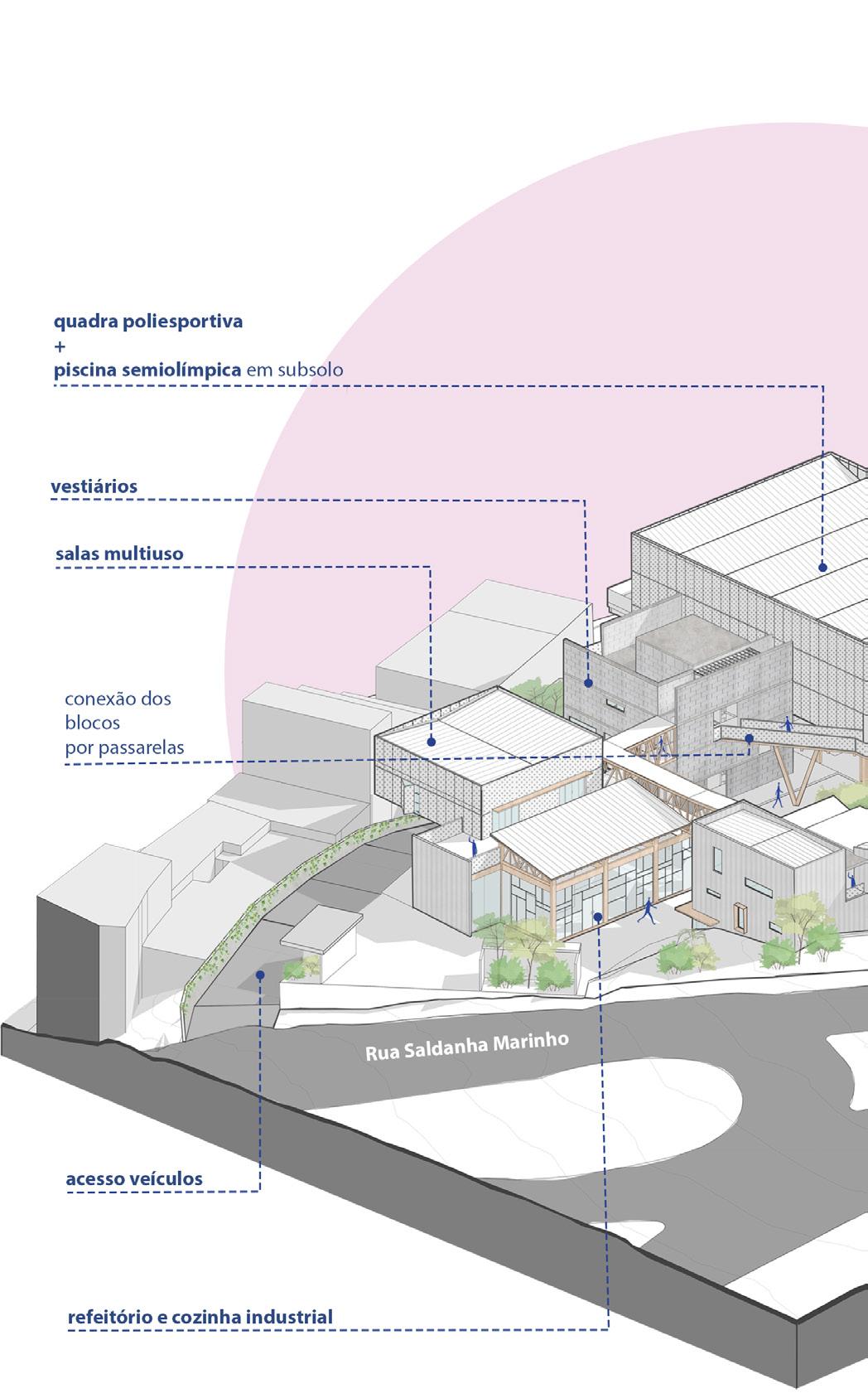 O projeto tem como premissa democratizar o acesso por meio a interlocução de usos de esfera pública. Nesse sentido, o edifício mantém a conexão entre os usuários dos diferentes usos.