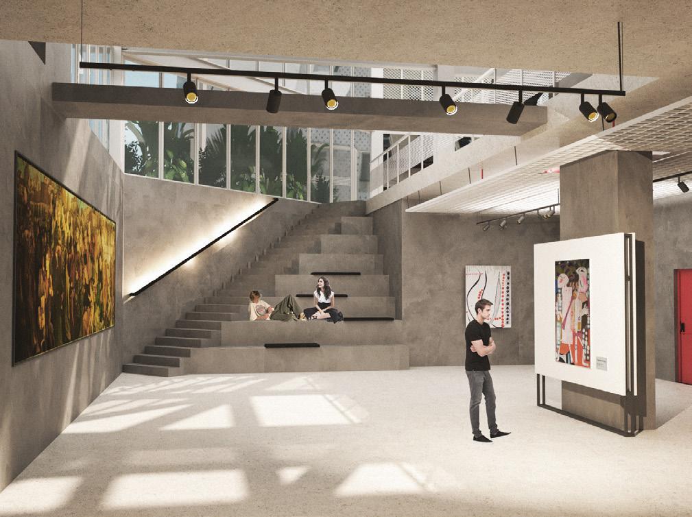 O programa se distribui de modo a criar uma atmosfera convidativa ao público externo da instituição, com usos abertos à usuários externos à Residência, como áreas expositivas da galeria e terraços como extensão de espaço público, além de fornecer usos de apoio à região, como lavanderia, academia, restaurante e café.